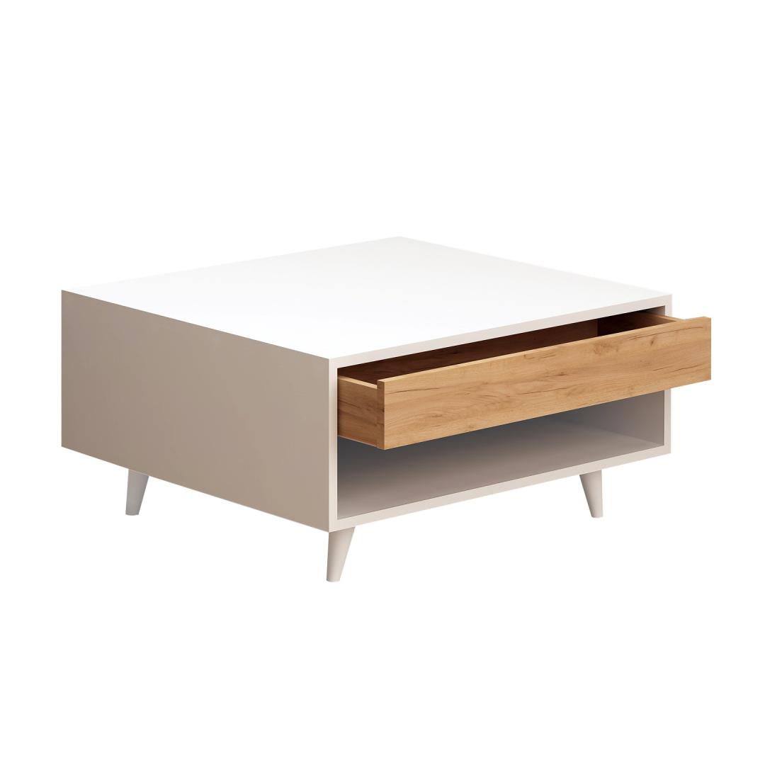 Tutvustame meie peenet kohvilauda, mis on täiuslik segu elegantsist ja funktsionaalsusest, mis muudab teie eluruumi stiiliparadiisiks. Vabastage elegantsi jõudOma elegantse disaini ja soliidse värvikontseptsiooniga lisab see kohvilaud igasse ruumi elegantsust. Tamme ja valge värvi kombinatsioon loob harmoonilise tasakaalu, mis teeb sellest mitmekülgse eseme, mis täiendab vaevata iga sisekujundust.Kogemused võrratu vastupidavusSee 100% melamiiniga kaetud puitlaastplaadist valmistatud kohvilaud on valmistatud kestma. 18 mm paksus tagab erakordse tugevuse ja vastupidavuse, mis võimaldab taluda aja katsumust. Praktilisus ja organiseeritavusSee kohvilaud on varustatud mugava sahtliga, mis pakub rohkelt hoiuruumi teie hädavajalike asjade jaoks, hoides teie elutoa segadusteta. 2-astmeline disain lisab lisafunktsionaalsust, pakkudes täiendavat pinda raamatute, ajakirjade või dekoratiivsete esemete jaoks. Kompromissitu kvaliteet ja stabiilsusTugevate plastjalgadega varustatud kohvilaud tagab stabiilsuse ja tasakaalu. Olenemata sellest, kas naudite tassi kohvi või korraldate koosviibimist, võite olla kindel, et see laud jääb kindlalt seisma, pakkudes usaldusväärset alust teie väärtuslikele hetkedele. Tehnilised üksikasjad:Materjal: Materjal: Materjal: Materjal: Materjal: Materjal: Materjal: Materjal: materjal: 100% melamiiniga kaetud puitlaastplaatPaksus: 18mmJalad: PlastistMõõdud: Laius - 80cm, kõrgus - 40cm, sügavus - 80cm.Omadused: 1 sahtli, 2-korruseline konstruktsioonVärv: Tamm ja valgeUuendage oma eluruumi meie kohvilaudadega juba täna ja andke endale täiuslik kombinatsioon stiilist, vastupidavusest ja funktsionaalsusest. Kogege rõõmu sellest, et teil on olemas ese, mis mitte ainult ei täiusta teie sisekujundust, vaid rikastab ka teie igapäevaelu. Värv: Oak White