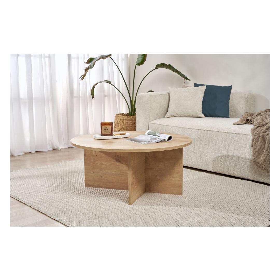 Valmistatud 100% melamiinkattega puitlaastplaadist, on see kohvilaud mitte ainult stiilne, vaid ka vastupidav ja pikaealine. 18mm paksus tagab stabiilsuse ja tugevuse, samas kui 20kg kandevõime võimaldab sul mureta eksponeerida oma lemmikraamatuid, ajakirju ja dekoratiivseid esemeid. Ruumikas 90cm x 90cm pind pakub piisavalt ruumi kõigile sinu olulistele asjadele.