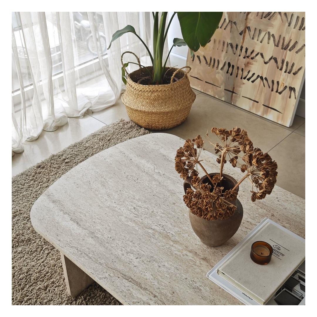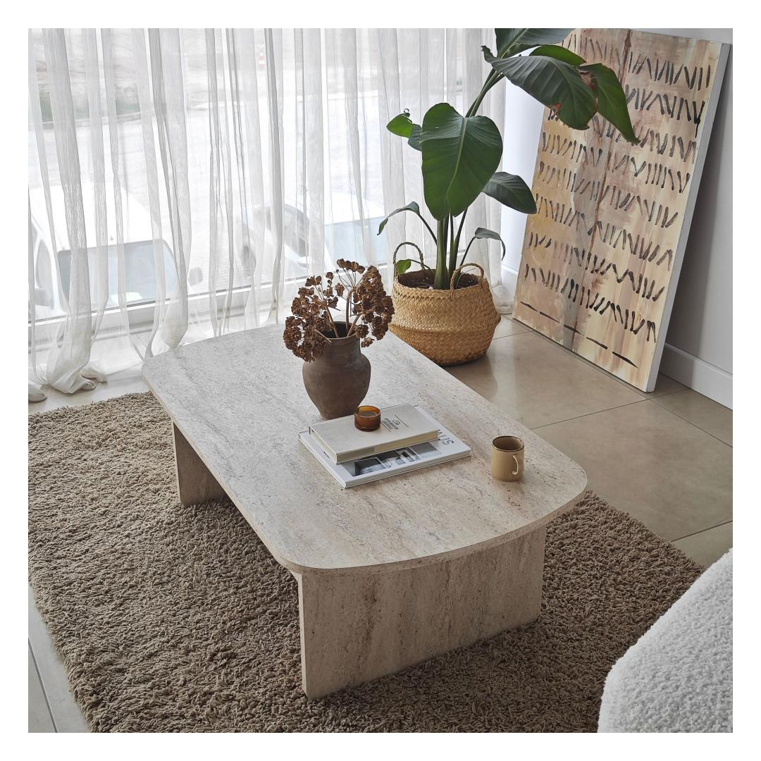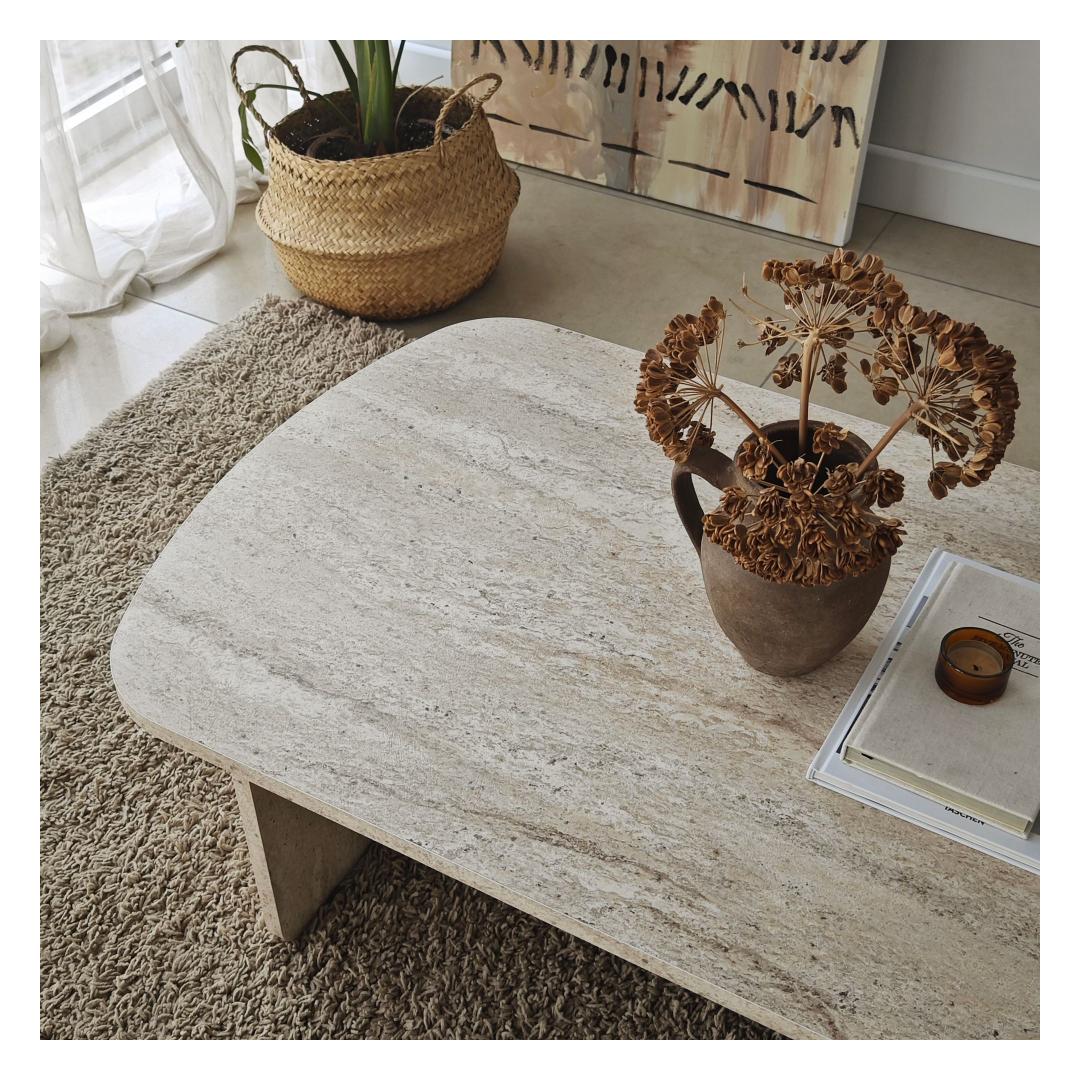 Selle kohvilaua travertiini värvus on ajatu ja mitmekülgne, sulandudes sujuvalt mis tahes interjööri stiiliga. Selle elegantne disain ja puhtad jooned muudavad selle ideaalseks elutoa keskmeks, lisades teie kodu sisustusele kaasaegset hõngu.