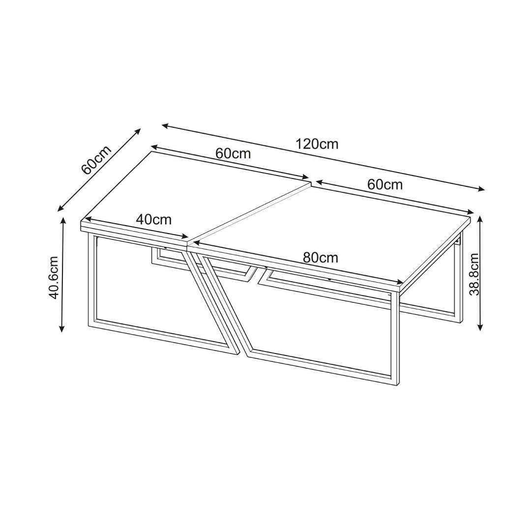 Muuda oma elutuba stiilseks ja rafineerituks meie hämmastava kohvilaudade komplektiga. Valmistatud 100% melamiinkattega puitlaastplaadist, on see komplekt mitte ainult vastupidav, vaid ka uskumatult šikk. Sujuv valge värv lisab igasse ruumi elegantsi, samas kui mustad metalljalad pakuvad modernset kontrasti.Tõsta oma eluruumiÜtle hüvasti igavale ja vananenud mööblile - meie kohvilaudade komplekt on ideaalne täiendus igasse koju. Olgu see siis kohvi nautimine sõpradega või filmiõhtu korraldamine, see komplekt jätab mulje ja tõstab sinu eluruumi.Kvaliteetne käsitööValmistatud täpsusega ja detailidele tähelepanu pöörates, on see komplekt loodud kestma. 18 mm paksune puitlaastplaat tagab stabiilsuse ja vastupidavuse, samas kui avarad mõõtmed pakuvad piisavalt ruumi kõigile sinu olulistele asjadele.Kaasaegne disainSelle kohvilaudade komplekti sujuv ja kaasaegne disain uuendab koheselt sinu elutoa sisustust. Puhtad jooned ja minimalistlik esteetika muudavad selle lihtsaks sobitamiseks igasuguste mööblistiilidega, alates kaasaegsest kuni traditsioonilise.Tehnilised andmed:Materjal: 100% melamiinkattega puitlaastplaatPaksus: 18 mmSuur laua suurus: Laius: 60-80 cm, Kõrgus: 38.8 cm, Sügavus: 60 cmVäike laua suurus: Laius: 40-60 cm, Kõrgus: 40.6 cm, Sügavus: 60 cmKokku suurus: Laius: 120 cm, Kõrgus: 40.6 cm, Sügavus: 60 cmJalad: Mustad metalljaladVärv: Valge Värv: White