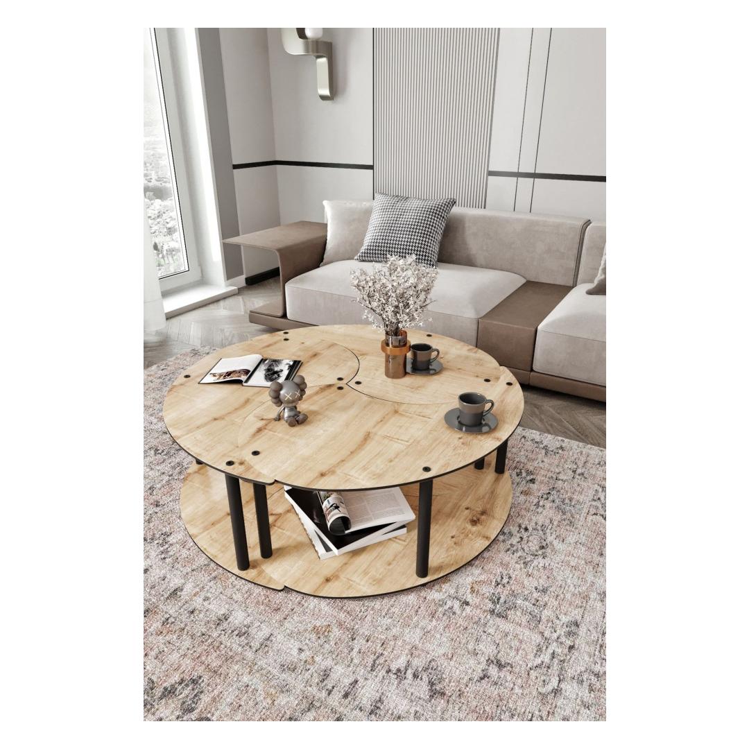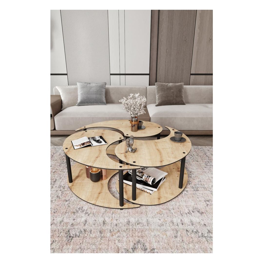 Selle kohvilaudade komplekti kaasaegne ja uuenduslik disain võimaldab sul vabastada oma ainulaadse stiili ja isikupära. Olgu sul minimalistlik välimus või eklektiline vibe, saab seda komplekti hõlpsasti integreerida igasse sisekujundusplaani. Lisa vaas värskete lilledega või hunnik oma lemmikraamatuid, et viimistleda välimust.