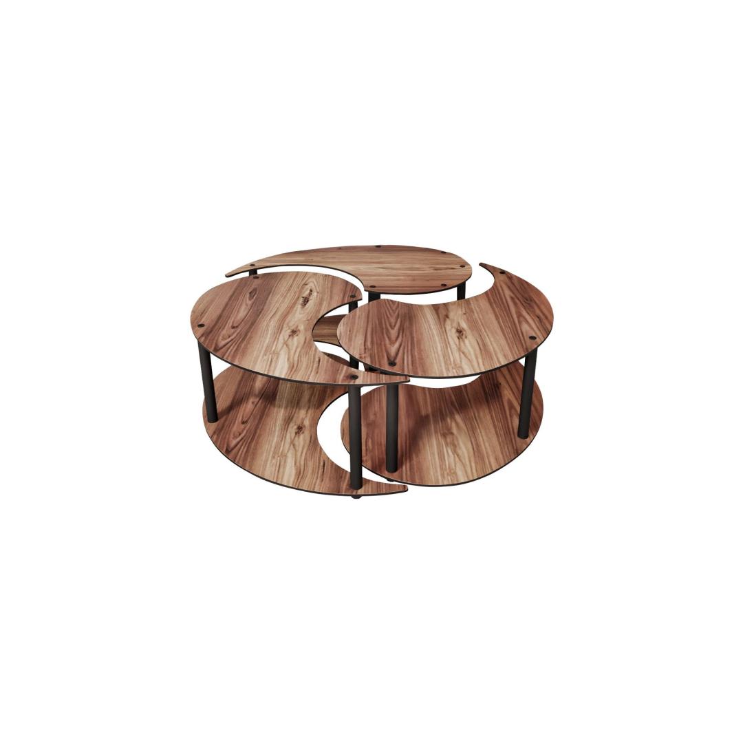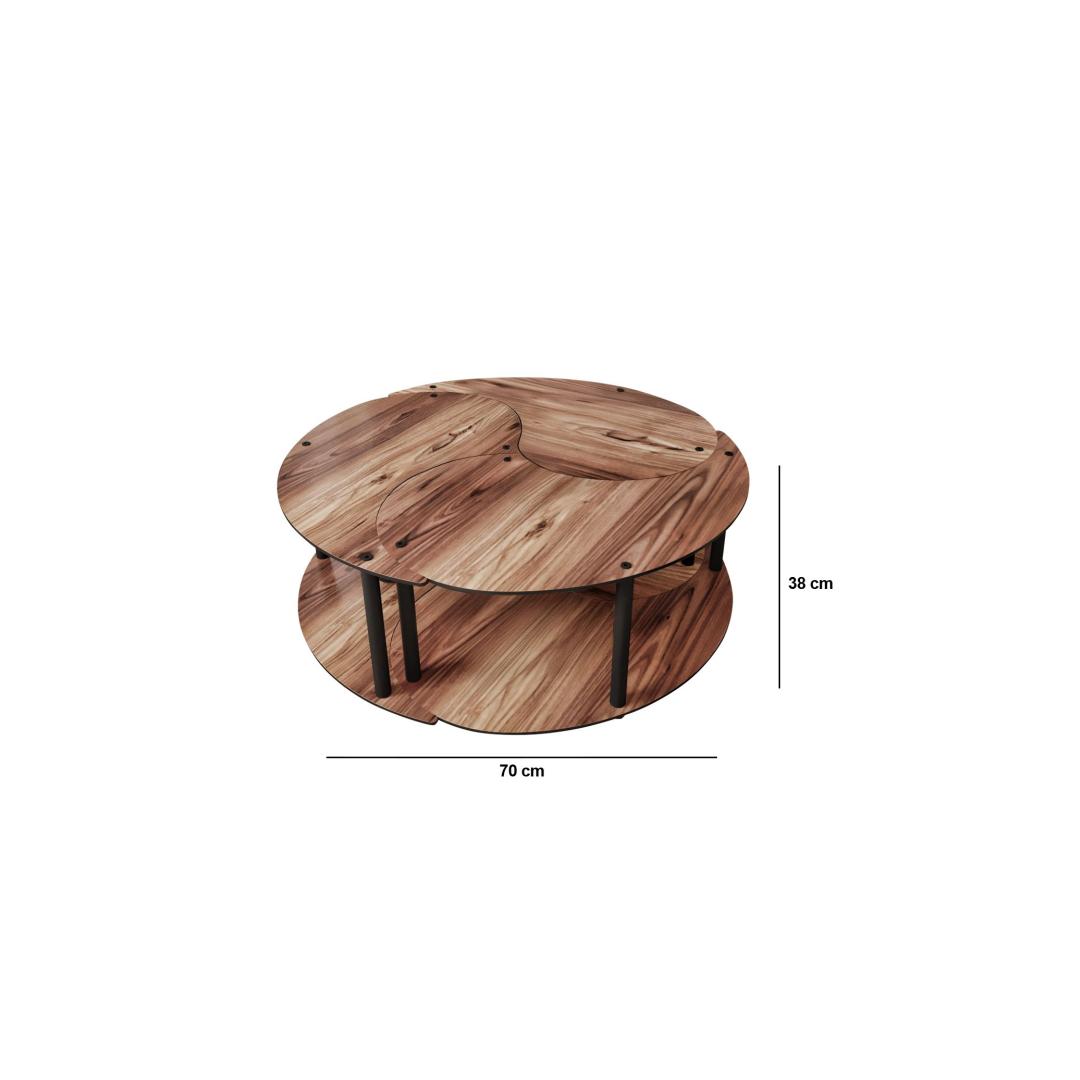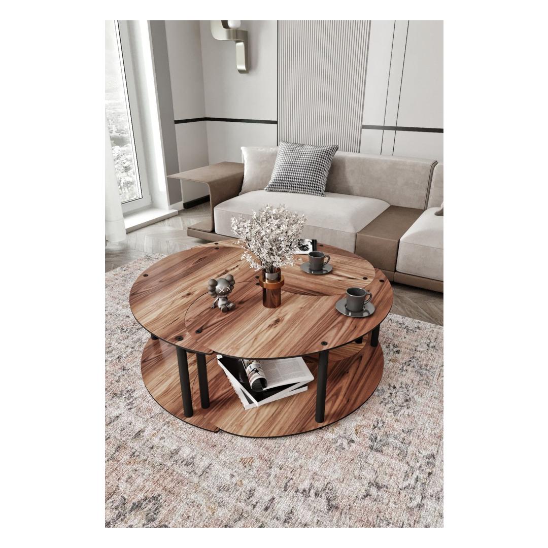 Muuda oma eluruum meie kauni 3-osalise kohvilaudade komplektiga, mis on valmistatud 100% MDF-ist, et tagada vastupidavus ja stiil. See komplekt sisaldab suurt lauda, mille diameeter on 70 cm, ja kahte väiksemat lauda, mis on ideaalsed, et luua ühtne välimus sinu kodus. Kompressitud Kraft-jalad lisavad elegantsi, samas kui rikkalik pähklivärv toob soojust ja rafineeritust igasse ruumi.