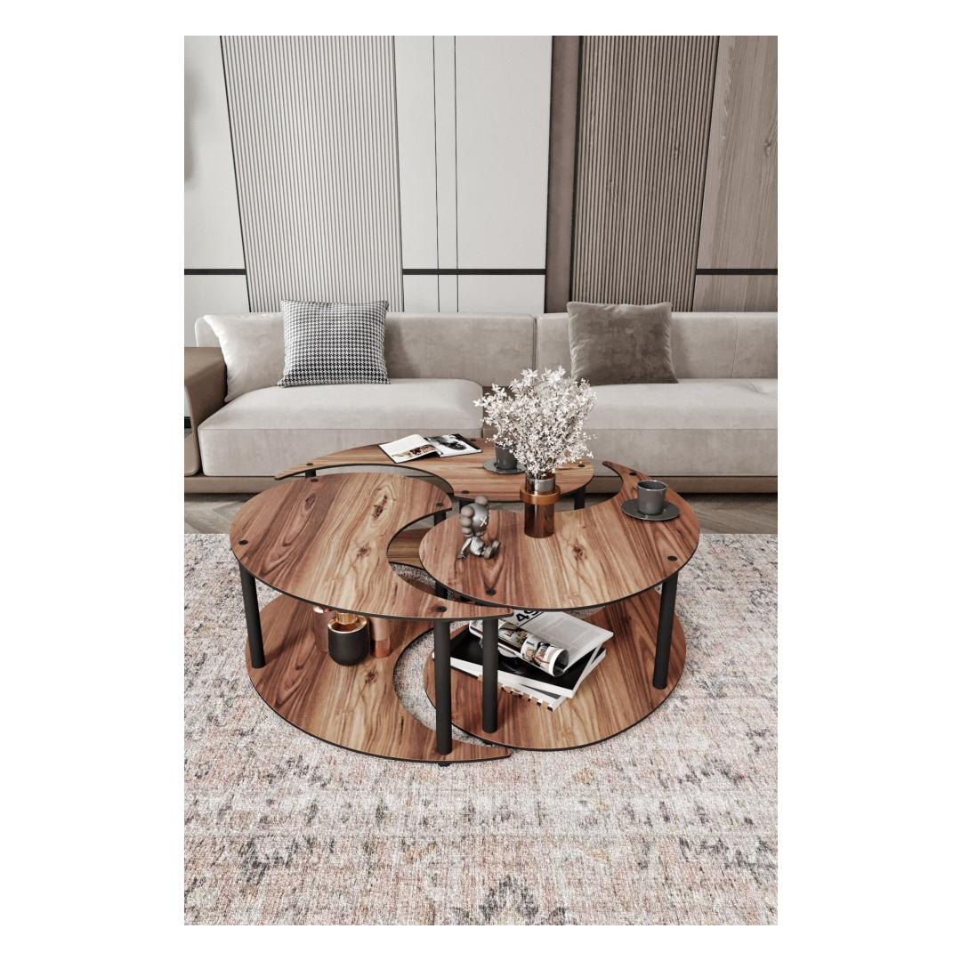 Lisa oma elutuppa modernsuse ja uuenduse puudutus selle stiilse ja elegantse kohvilaudade komplektiga. Tugev pruun värv lisab sügavust ja rikkust, samas kui puhtad jooned ja minimalistlik disain loovad kaasaegse ilme, mis kindlasti jätab mulje sinu külalistele.