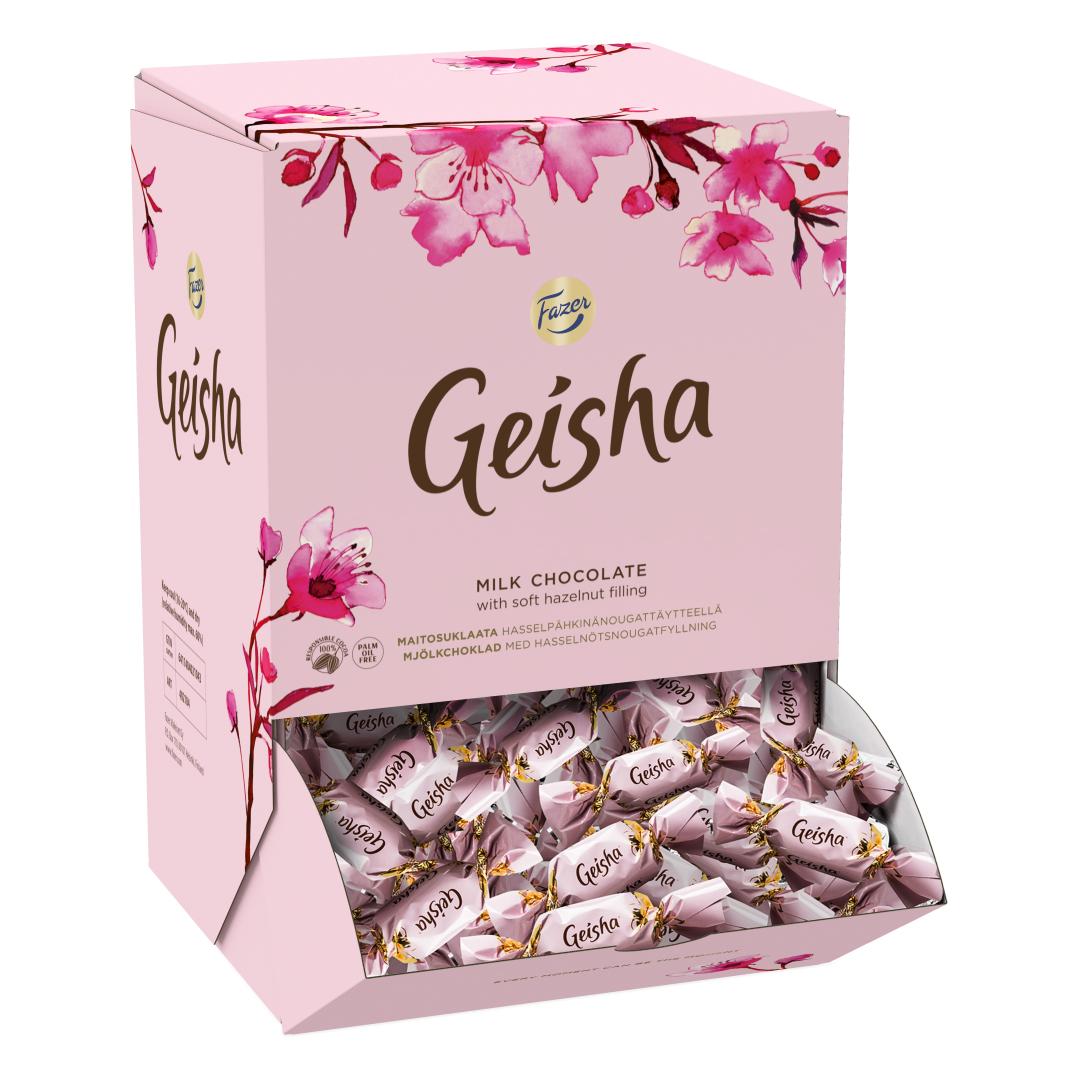 Maitsvate Geisha pralineede piimašokolaadikatte all ootab pehme, kuid krõbe sarapuupähkli-nuugati täidis. Kõik Fazeri maitsvad šokolaadid on valmistatud 100% vastutustundlikult toodetud kakaost. Andke oma lähedastele natuke aega koos ja tooge välja mõned maitsvad Geisha šokolaadid. Kaunis šokolaadikarp on ka meeldejääv kingitus.