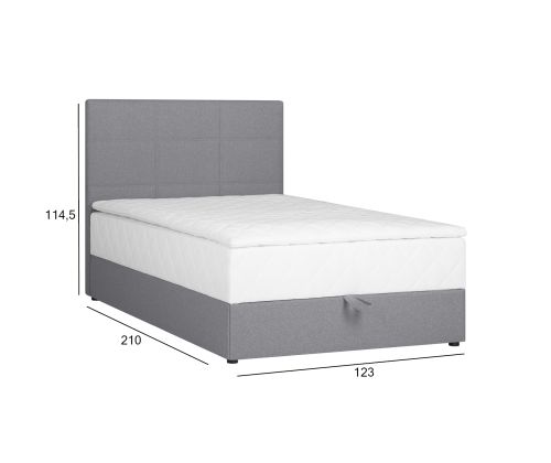 Kontinentaalvoodi LEVI 120x200cm, madratsiga, hall, 123x210xH114,5cm