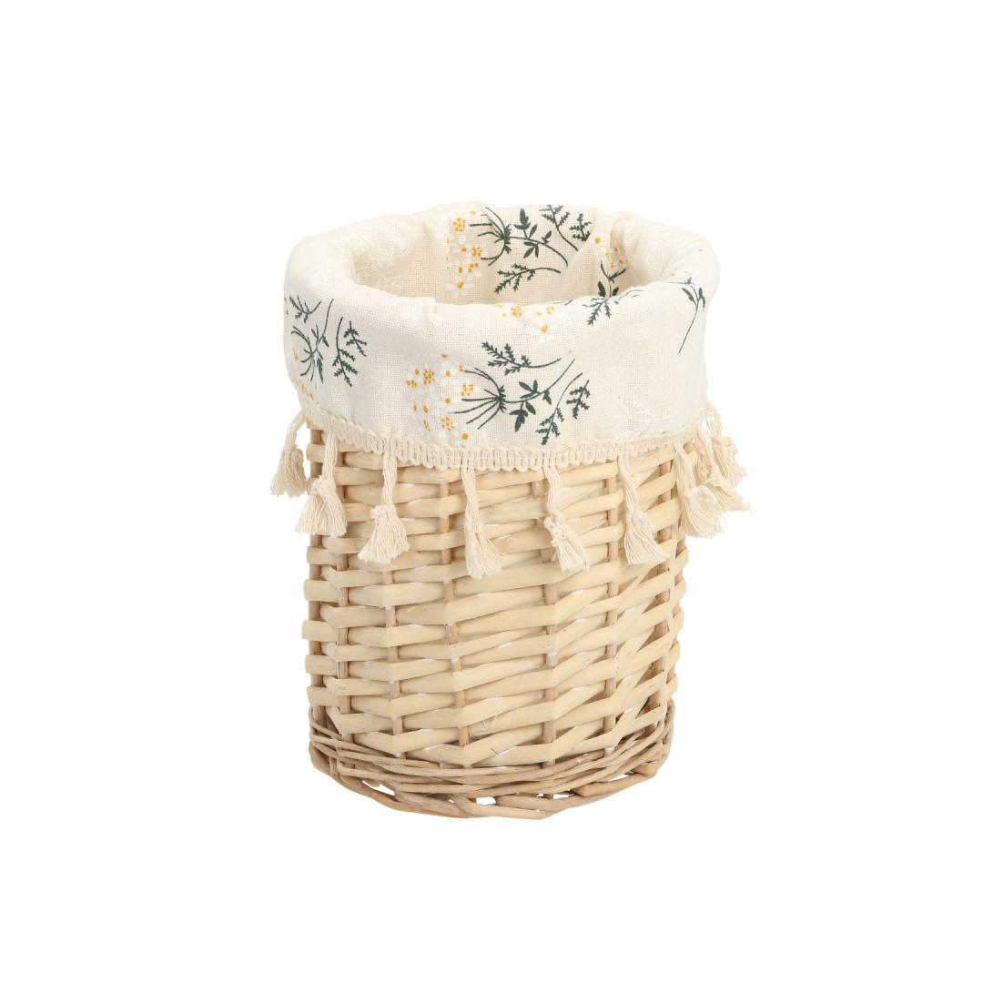Tekstiilvooder: puuvillane lilleline kangas. Korvi materjal: käsitsi punutud naturaalne pajuvits.