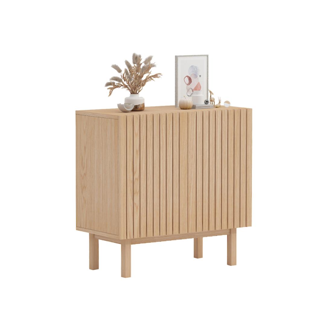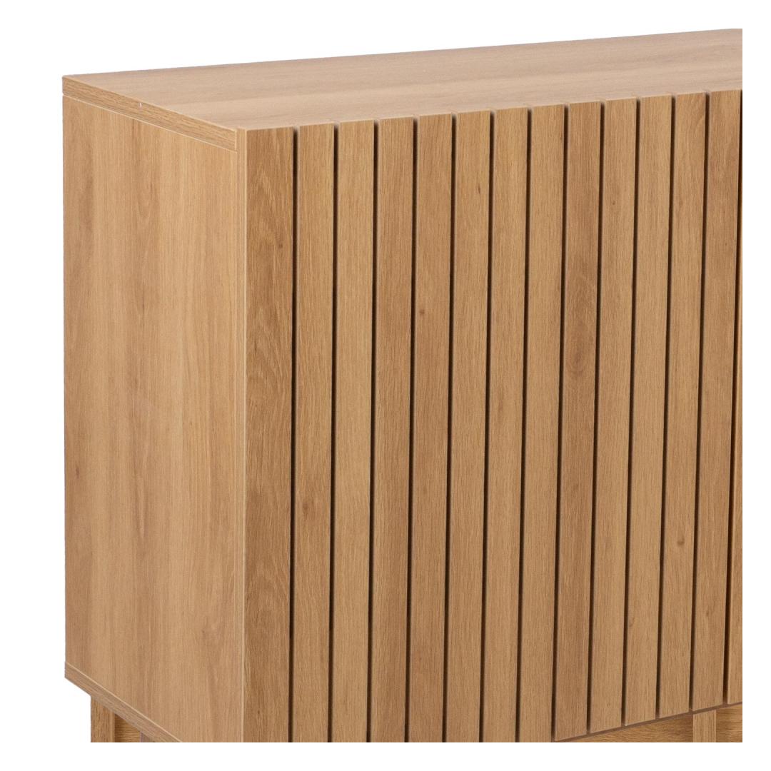 Kummut on valmistatud heleda tammedekooriga melamiinplaadist. Peenikestest liistudest uksepaneelid loovad õhulise ja elegantse mulje.