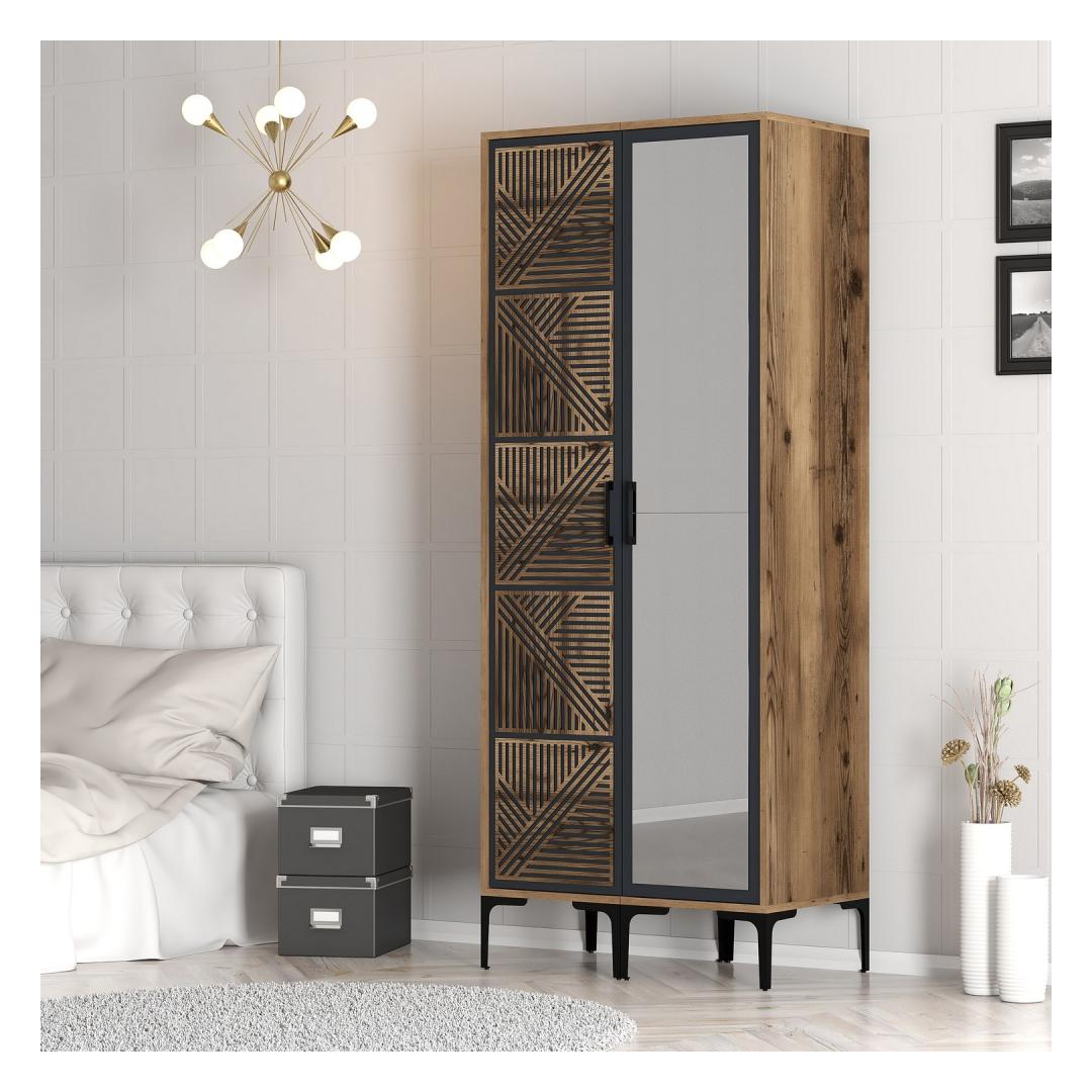 Kas oled väsinud segadusest ja korraldamata riidekapist? Ütle hüvasti kaosale ja tere korraldusele meie kauni riidekapiga! Valmistatud 100% melamiinkattega puitlaastplaadist, on see riidekapp mitte ainult vastupidav, vaid ka stiilne, lisades igasse ruumi elegantsi.Muuda oma ruumiLihtsa disaini ja ideaalse pähkli ning antriitvärvi kombinatsiooniga tõstab see riidekapp koheselt sinu magamistoa või riietusruumi ilmet. Selle avar sisemus pakub piisavalt ruumi kõigi sinu riiete, kingade ja aksessuaaride jaoks, aidates sul hoida kõik korras ja puhtana.Kvaliteetne käsitööValmistatud täpselt ja detailidele tähelepanu pöörates, on see riidekapp loodud kestma. 18mm paksune puitlaastplaat tagab stabiilsuse ja vastupidavuse, samas kui 80cm laius, 201.4cm kõrgus ja 47.5cm sügavus pakuvad piisavalt ruumi sinu asjadele.Korralda stiilseltÜtle hüvasti segadusele ja tere korraldusele meie stiilse ja funktsionaalse riidekapiga. Olgu sul vaja lisaruumi või soovid lihtsalt oma praegust riidekappi uuendada, on see riidekapp ideaalne lahendus.Tehnilised andmed:Materjal: 100% melamiinkattega puitlaastplaatPaksus: 18mmLaius: 80cmKõrgus: 201.4cmSügavus: 47.5cmVärv: Pähkel ja antriit Värv: Walnut Anthracite