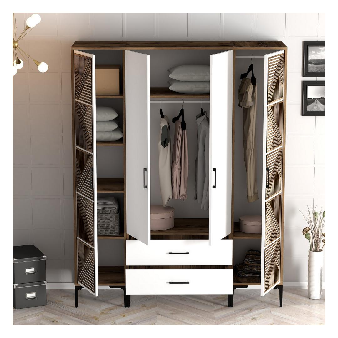 Riidekapp Kumsal PTP - Walnut, White