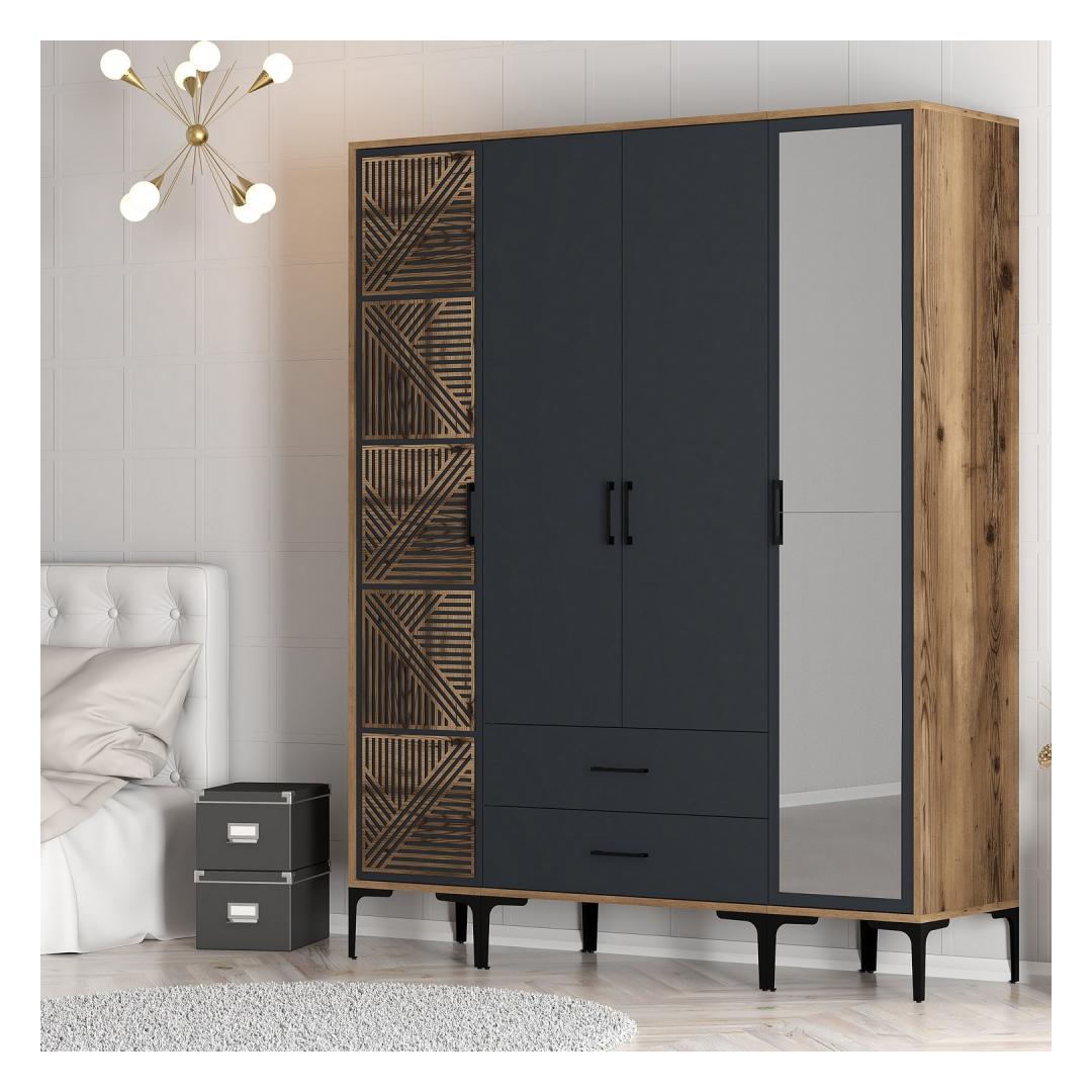 Riidekapp Kumsal PTR - Walnut, Anthracite