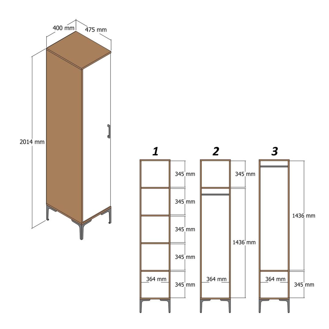 Width: 40 cm Height: 201,4 cm Depth: 47,5 cm