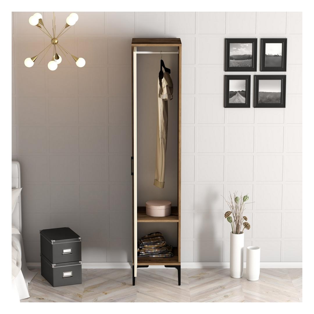 Kas olete väsinud segadusest täis kappidest ja organiseerimata ruumidest? Ära vaata kaugemale kui meie kaunis garderoob, mis on loodud tooma teie koju nii stiili kui funktsionaalsust.Elegantne disain: See garderoob omab sujuvat ja modernset disaini, kauni pähkli ja kreemi värvikombinatsiooniga, mis sobib igasse sisustusse. Selle puhtad jooned ja minimalistlik esteetika tõstavad teie magamistoa ilme koheselt.Avatud hoiuruum: Laiusega 40 cm, kõrgusega 201,4 cm ja sügavusega 47,5 cm pakub see garderoob piisavalt hoiuruumi kõigi teie riiete, kingade ja aksessuaaride jaoks. Ütle hüvasti kitsastele kappidele ja tere organiseeritud õnnele.Kestva ehitusega: Valmistatud 100% melamiinkattega puitlaastplaadist, mille paksus on 18 mm, on see garderoob loodud kestma. See talub igapäevast kulumist, tagades, et saate nautida selle ilu aastaid.Tehnilised andmedMaterjal: 100% melamiinkattega puitlaastplaatPaksus: 18 mmLaius: 40 cmKõrgus: 201,4 cmSügavus: 47,5 cmVärv: Pähkel ja kreemÄrge leppige keskpärase hoiulahendusega. Investeerige meie garderoobi ja muutke oma ruum segadusvabaks oaasiks. Tellige oma täna ja kogege erinevust, mida see teie kodus teha suudab. Värv: Walnut Cream