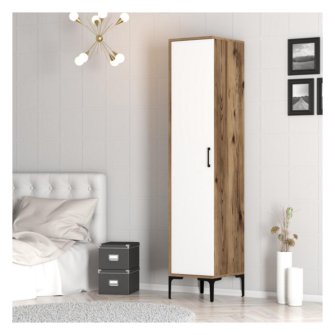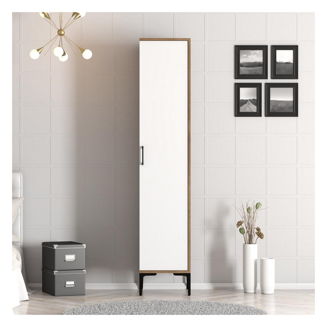 Kas oled väsinud segadusest täis kappidest ja üle voolavatest sahtlitest? Ütle hüvasti korralagedusele ja tere täiuslikule hoiulahendusele meie kauni garderoobiga.Elegantne ja Funktsionaalne DisainSee garderoob ei ole mitte ainult praktiline hoiulahendus, vaid ka stiilne lisand igasse ruumi. Sujuv disain ja kaasaegne pähkli ja valge värvikombinatsioon täiustavad igasugust sisustust, lisades sinu ruumile elegantsi.Kvaliteetne KäsitööValmistatud 100% melamiinkattega puitlaastplaadist, on see garderoob loodud kestma. 18mm paksus tagab vastupidavuse ja stabiilsuse, samas kui täpsed mõõtmed 40cm laius, 201.4cm kõrgus ja 47.5cm sügavus pakuvad piisavalt hoiuruumi kõigi sinu riiete ja aksessuaaride jaoks.Muuda Oma RuumiMuuda oma magamistuba või riietumisala selle garderoobiga, mis pakub nii stiili kui funktsionaalsust. Piisavalt ruumi riiete riputamiseks, kingade hoidmiseks ja aksessuaaride organiseerimiseks, sa imestad, kuidas sa kunagi ilma selleta hakkama said.Tehnilised Üksikasjad:Materjal: 100% melamiinkattega puitlaastplaatPaksus: 18mmLaius: 40cmKõrgus: 201.4cmSügavus: 47.5cmVärv: Pähkel ja Valge Värv: Walnut White