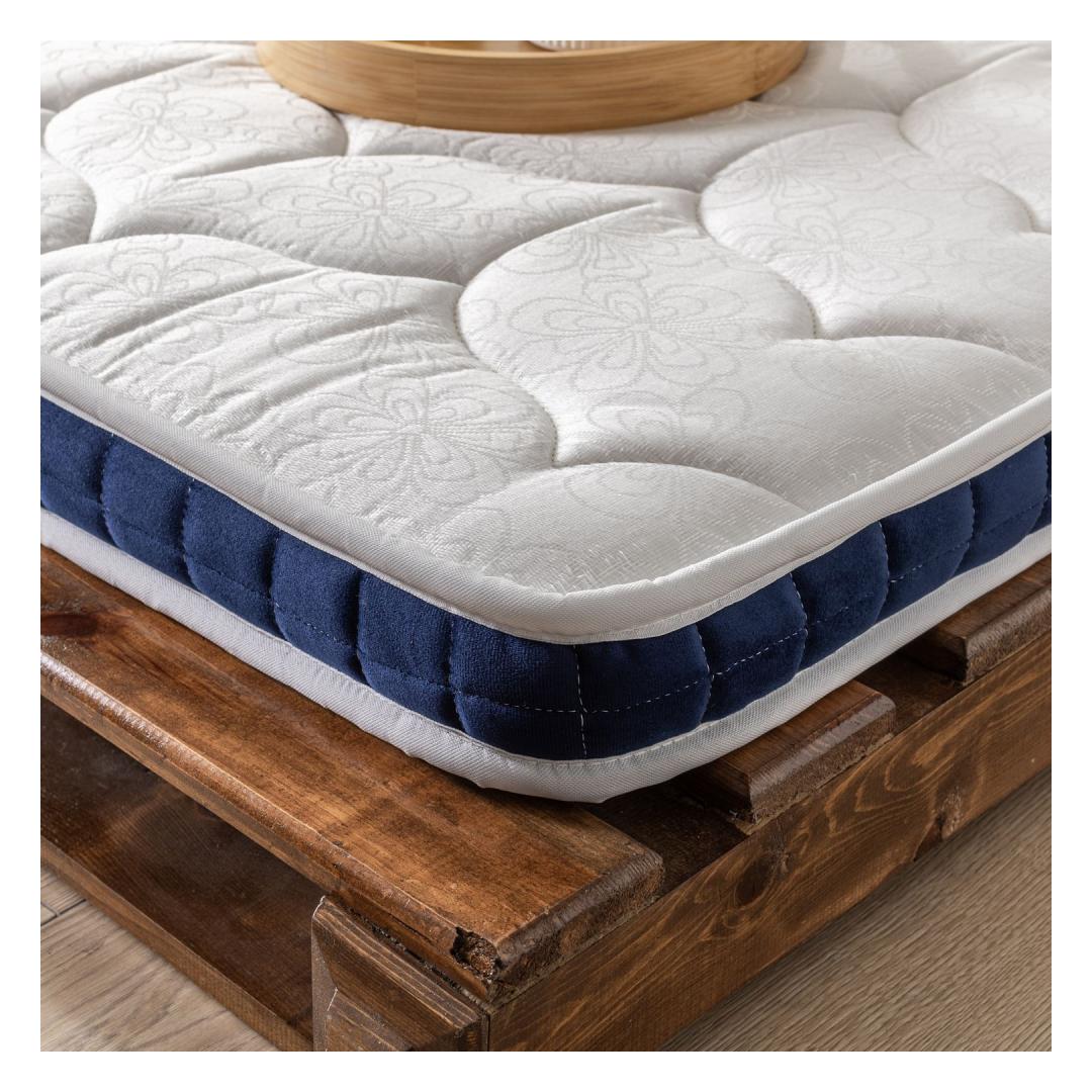 Kogege meie luksusliku madratsi kaudu äärmist mugavust ja toetust, mis on loodud pakkuma teile parimat und, mida olete kunagi kogenud. Jacquard-kootud kangast kate lisab teie magamistoale elegantsi, samas kui 8-kihiline sulevahtkate pakub pehmet ja hubast tunnet.Ükski mugavus ja tugi ei ole võrreldavadLangetage end vahtkihtide pehmusesse, mille ülemine kõrgus on 1,5 cm ja alumine kõrgus 6 cm, pakkudes ideaalset tasakaalu pehmuse ja kindluse vahel. Vedrudeta disain elimineerib igasuguse müra või liikumise ülekande, nii et saate rahulikult magada ilma häirivate teguriteta.Lihtne ja stiilne disainMadratsi sujuv sinine värv lisab teie ruumi värvi, luues rahustava ja kutsuva atmosfääri rahulikuks uneks. 100 cm laius, 8 cm kõrgus ja 200 cm sügavus teevad sellest ideaalse suuruse igasse magamistuppa, pakkudes piisavalt ruumi sirutamiseks ja lõõgastumiseks.Tehnilised andmed:Kate: Jacquard-kootud kangasKate: 8-kihiline sulevahtVahtkihi kõrgus: Ülemine: 1,5 cm, Alumine: 6 cmVedrudeta disainMõõtmed: Laius: 100 cm, Kõrgus: 8 cm, Sügavus: 200 cmVärv: Sinine Värv: Blue