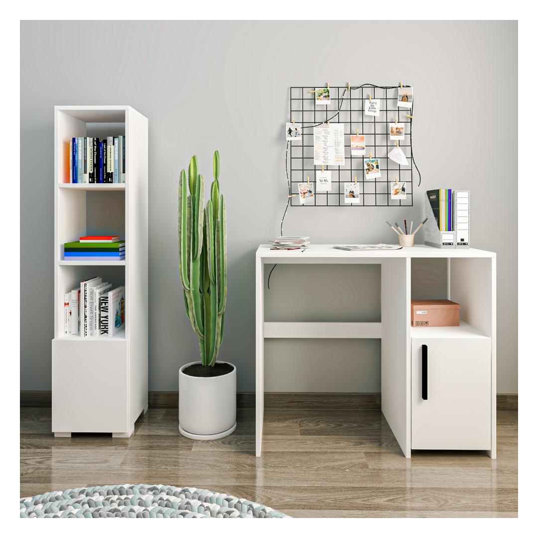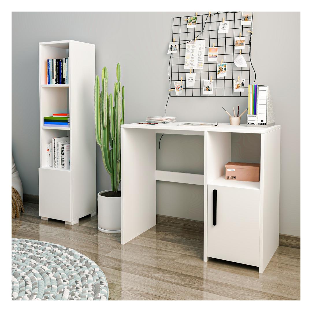 Tutvustame meie õppelaua ja raamaturiiulit, mis on kohustuslik täiendus iga üliõpilase või professionaali tööruumile. See mitmekülgne mööbel on loodud selleks, et suurendada teie produktiivsust, lisades samal ajal teie õpperuumi elegantsi.