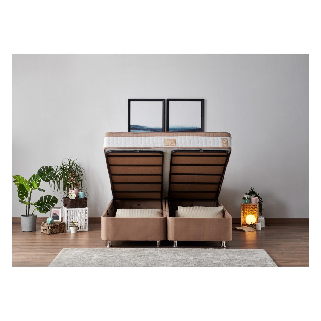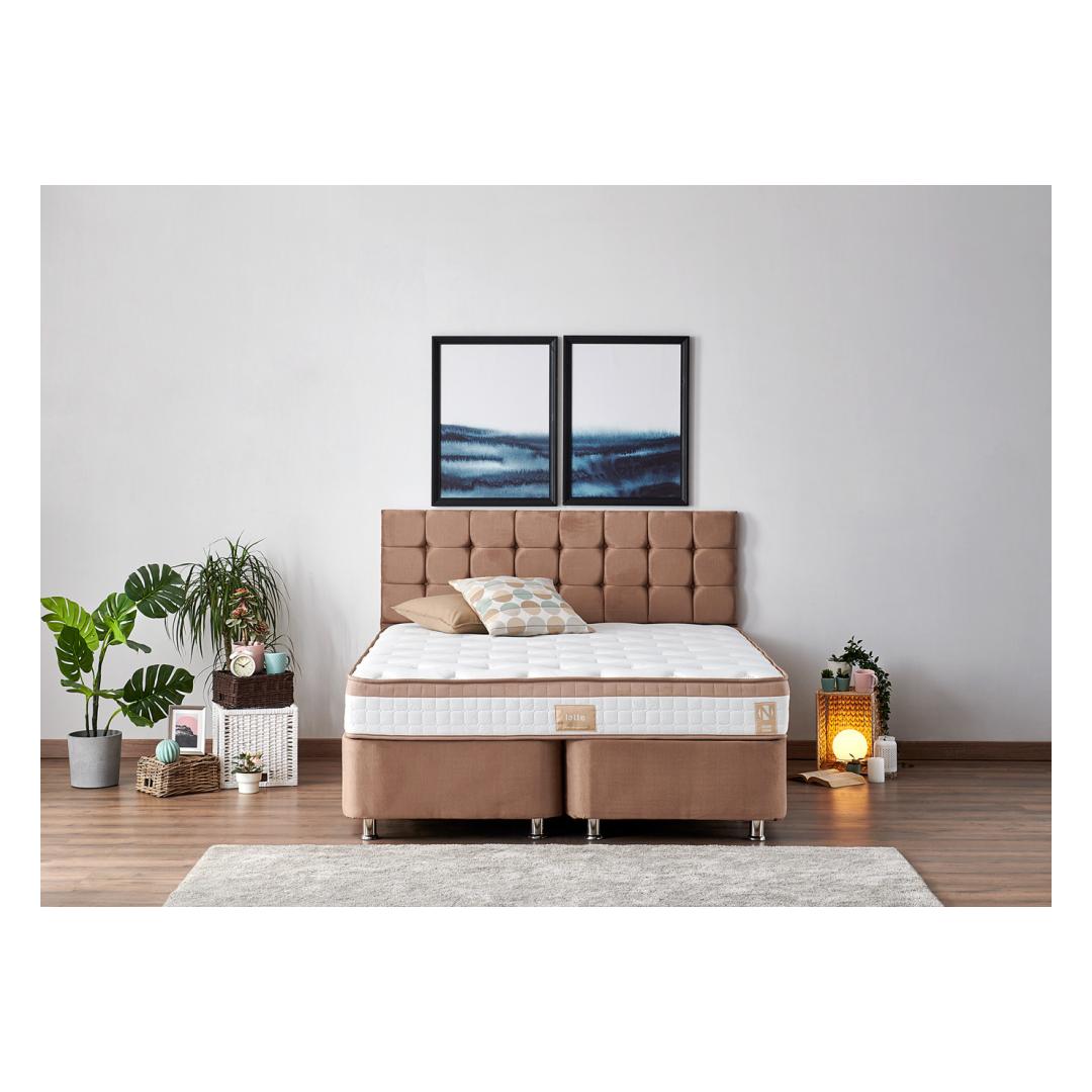Kogege hotelli luksust ja mugavust oma kodus meie kaheinimese madratsi, aluse ja peatoe komplektiga. Lõbutsege võrratu mugavusegaUppuge meie kaheinimese madratsi pehmusse, mis on loodud selleks, et pakkuda teile kõige rahulikumat ja noorendavat und. Mitme vedruga süsteem tagab teie kehale optimaalse toe, samal ajal kui täielik ortopeediline disain hoiab teie selgroogu valuvabaks unenäoks.Elegantne ja stiilne disainSuurendage oma magamistoa esteetilist atraktiivsust meie elegantse ja moodsa voodipõhja ja peaplaadiga. Helepruun värv lisab igale sisustusele elegantsi, samas kui 100% soho kangas õhkab luksust ja elegantsi. Kindel ja tugev konstruktsioonTerasraami ja mdf-servadega valmistatud meie kaheinimesevoodi madratsi, aluse ja peatoe komplekt on ehitatud kestma. 20 x 30 cm terasprofiil tagab erakordse stabiilsuse, samas kui kuus jalga ja voodipõhja õhukapsel tagavad maksimaalse toe ja vastupidavuse. Mugav ja praktilineMeie voodipõhi ja peatoe laius on 150 cm, mis pakub piisavalt ruumi, et saaksite end välja sirutada ja lõõgastuda. Kaasasolev kirst pakub täiendavat hoiuruumi teie asjadele, hoides teie magamistoa segadusteta. Tehnilised üksikasjad:Raam: TerasestKangas: Kangas: 100% Soho kangas20 x 30 cm terasprofiilMDF servadVoodipõhi: Laius: 150 cm Kõrgus: 38 cm Sügavus: 200 cm Peaplaat: Laius: 150 cm Kõrgus: 100 cm Sügavus: 5 cm Voodipõhja kõrgus: 28 cmJalgade kõrgus: 10 cmKuus jalgaVoodipõhi õhukapselTurvalukkKaasas kirstMadrats: Laius: 150 cm Kõrgus: 23 cm Sügavus: 200 cmKate: Kootud kangasMulti Spring SystemTäielik ortopeedilineVärvus: helepruun Värv: Light Brown