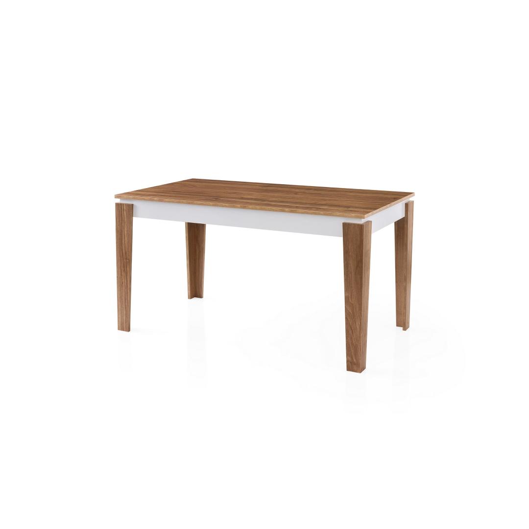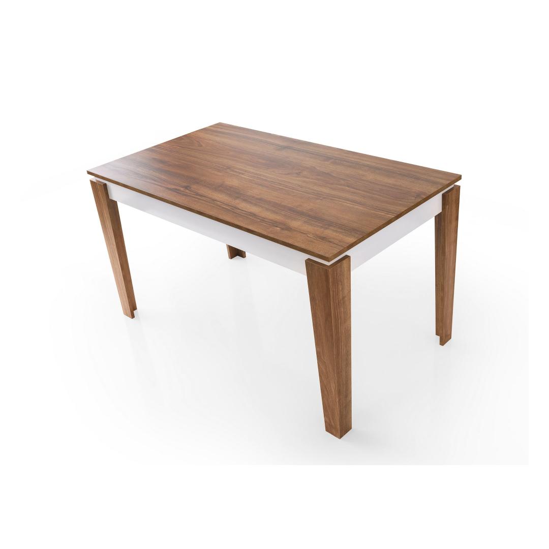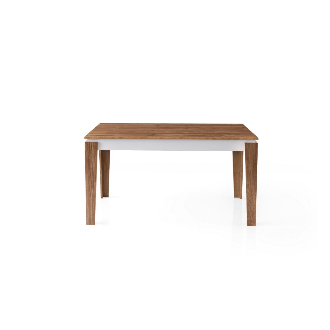 Pähklipuu ja valge värvi kombinatsioon annab sellele söögilauale šika ja kaasaegse ilme, mis tõstab teie kodu sisustust vaevata. Olgu tegemist õhtusöögipidamise või lõdva eine nautimisega perega, on see laud igasuguste ürituste jaoks ideaalne keskpunkt.