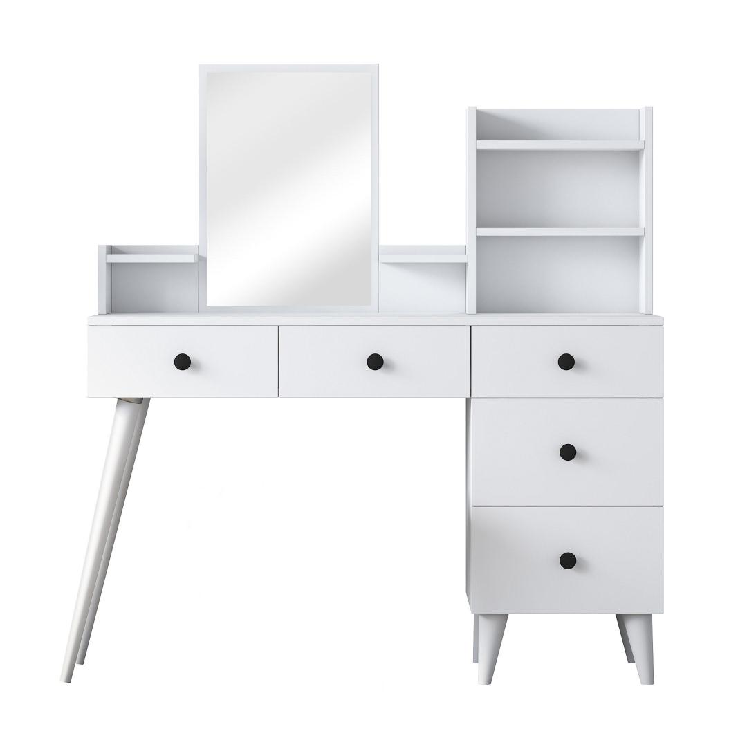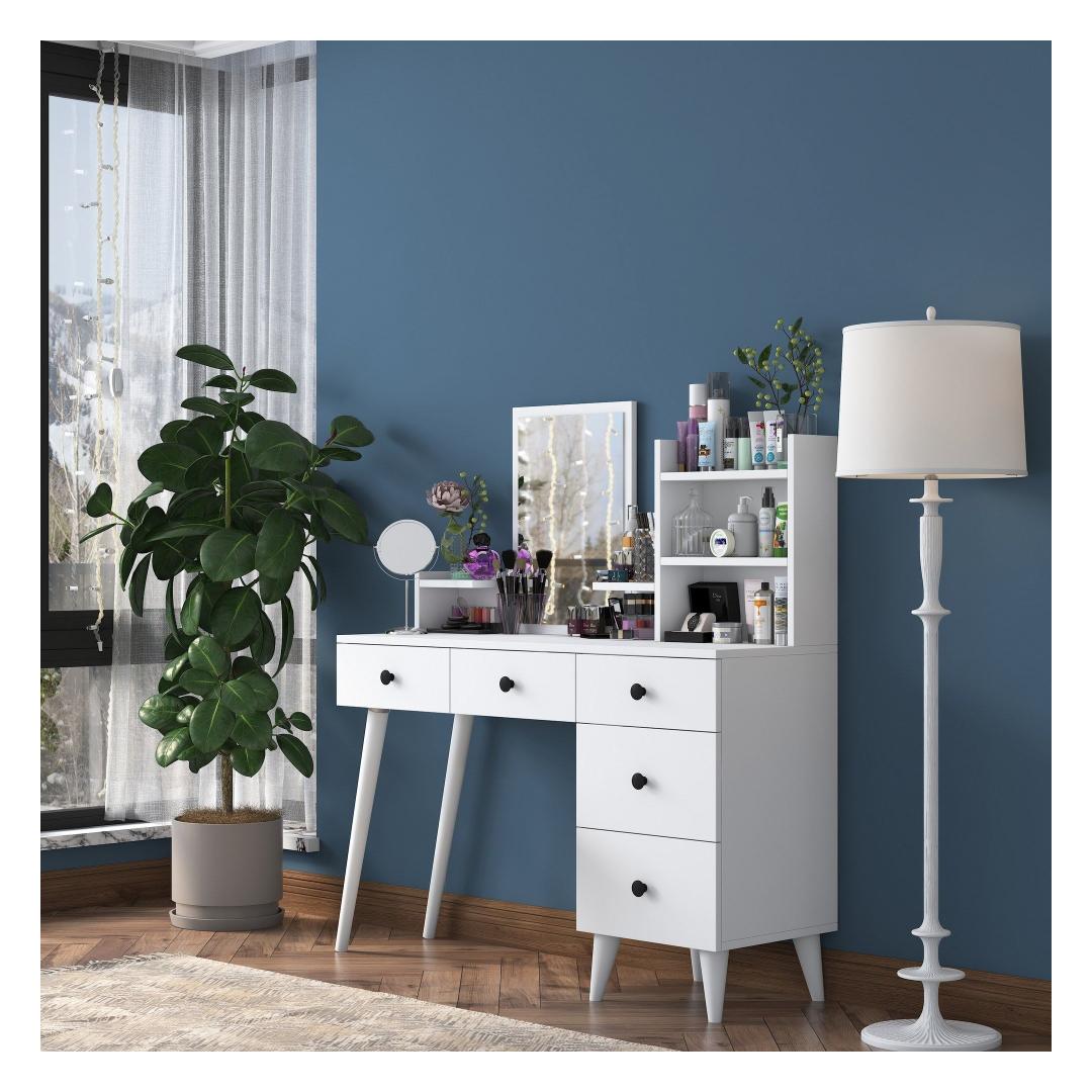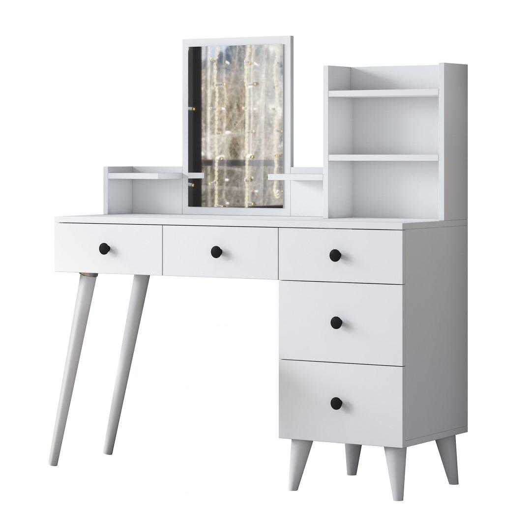 Lihtsa valge viimistluse ja avara lauapinnaga kiirgab see meigilaud rafineeritust ja stiili. Kaasaegne peegel lisab sära, muutes selle ideaalseks kohaks, kus valmistuda igaks sündmuseks.