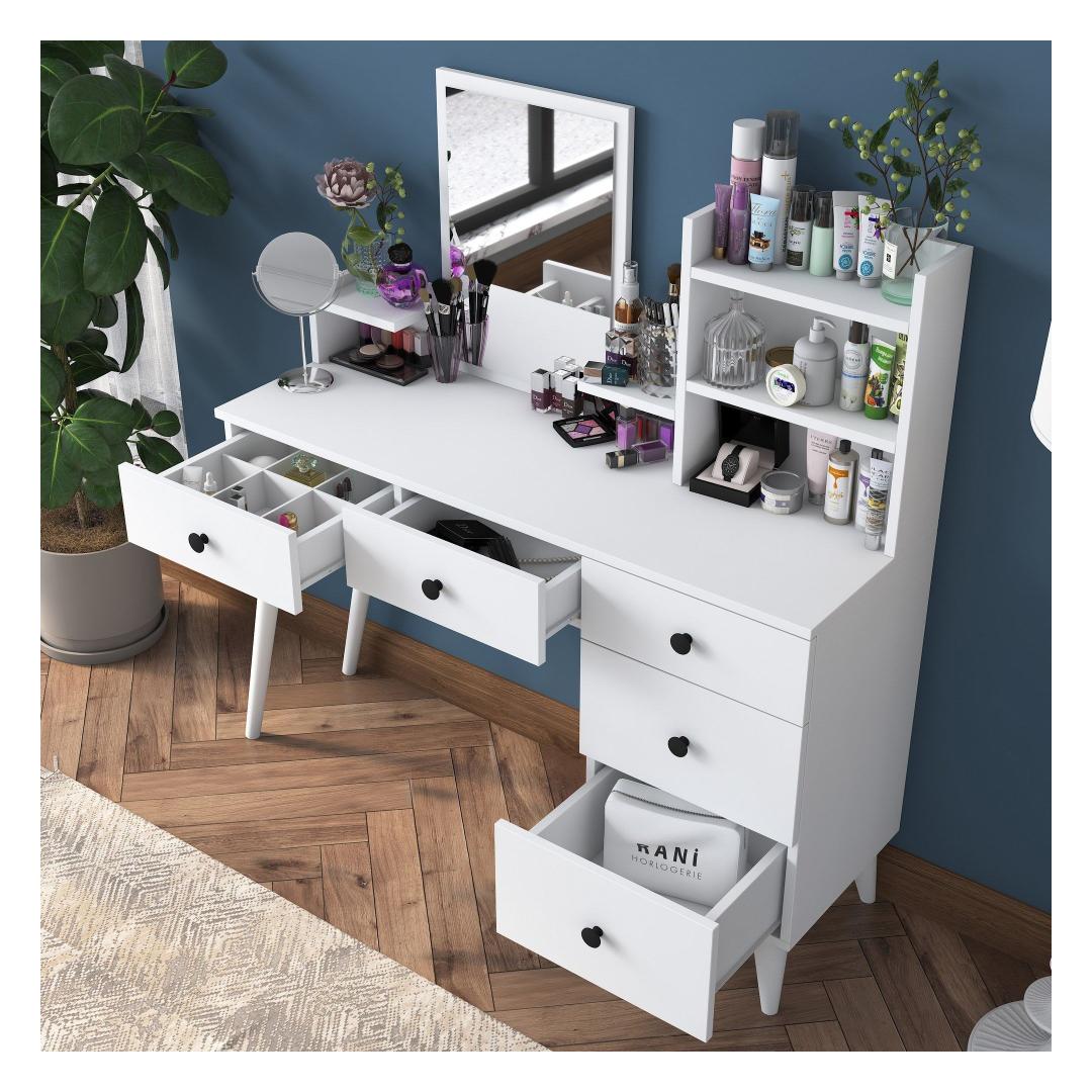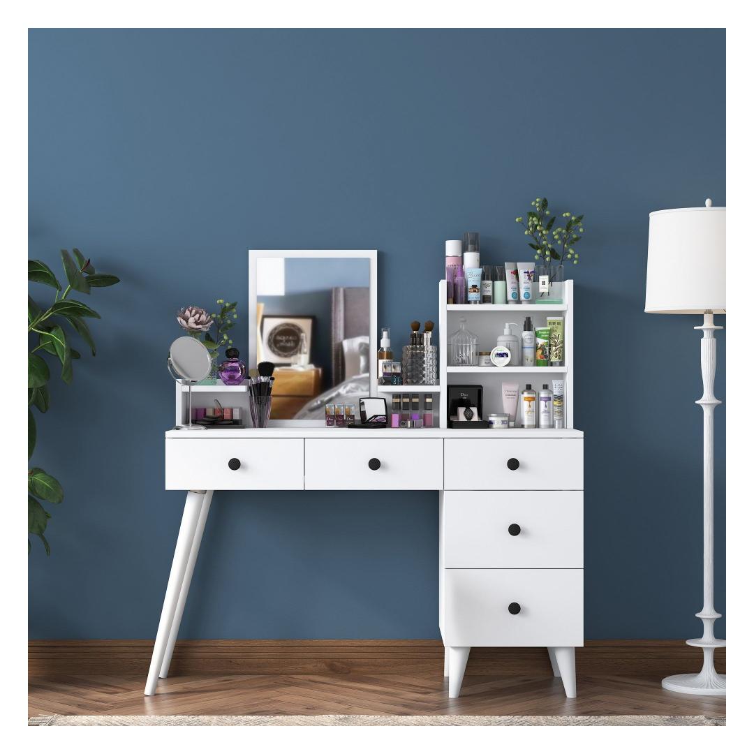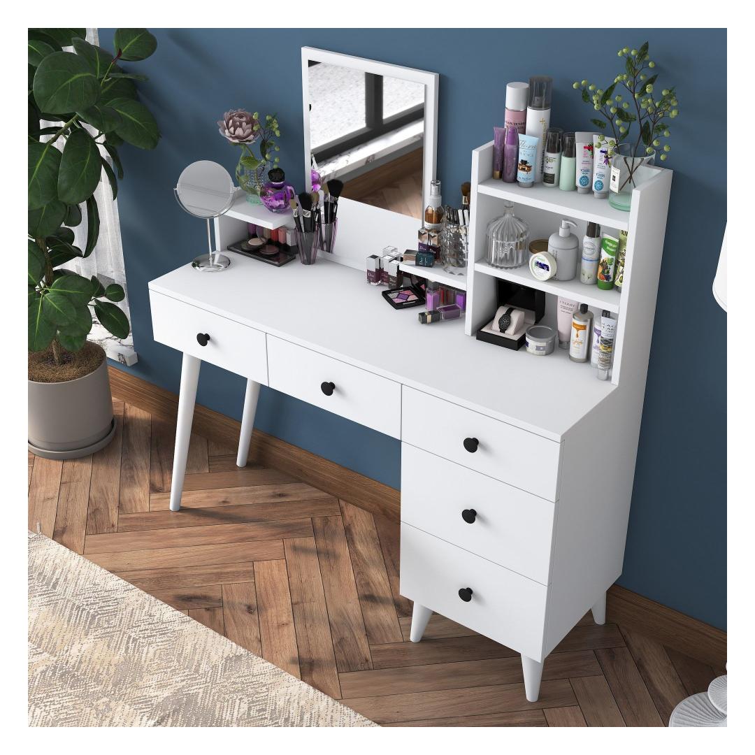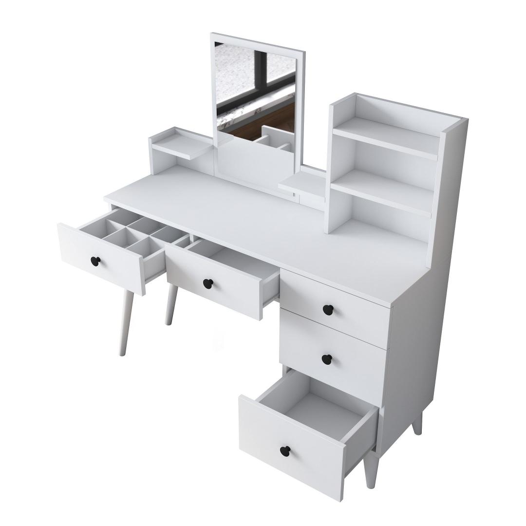 Lihtsa valge viimistluse ja avara lauapinnaga kiirgab see meigilaud rafineeritust ja stiili. Kaasaegne peegel lisab sära, muutes selle ideaalseks kohaks, kus valmistuda igaks sündmuseks.