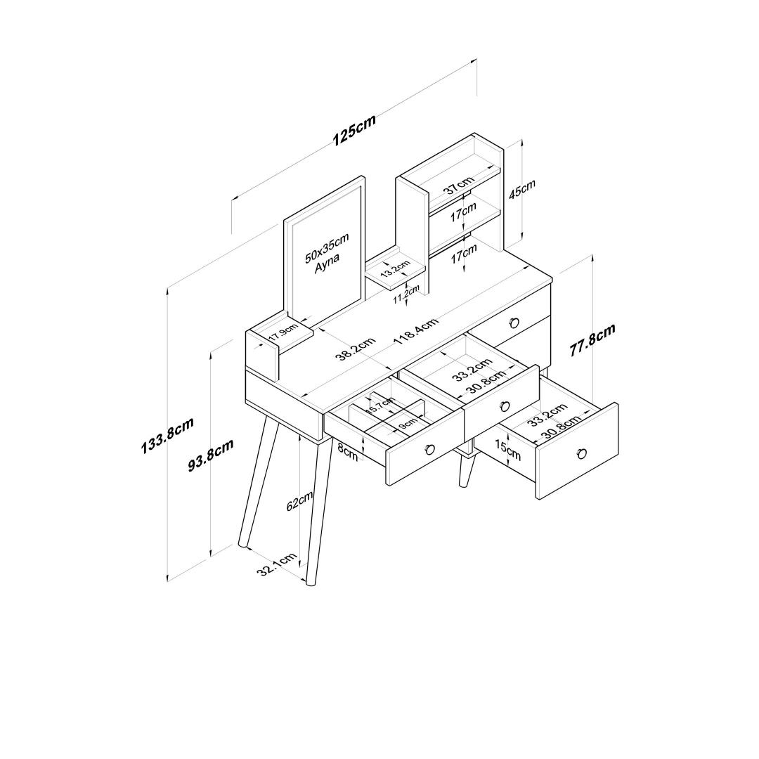 Muuda oma hommikurutiin meie kauni meigilaudaga, mis on loodud tooma elegantsi ja korraldust sinu iluruumi. Valmistatud 100% melamiinkattega E1 kvaliteediga puitlaastplaadist, on see laud mitte ainult vastupidav, vaid ka keskkonnasõbralik.