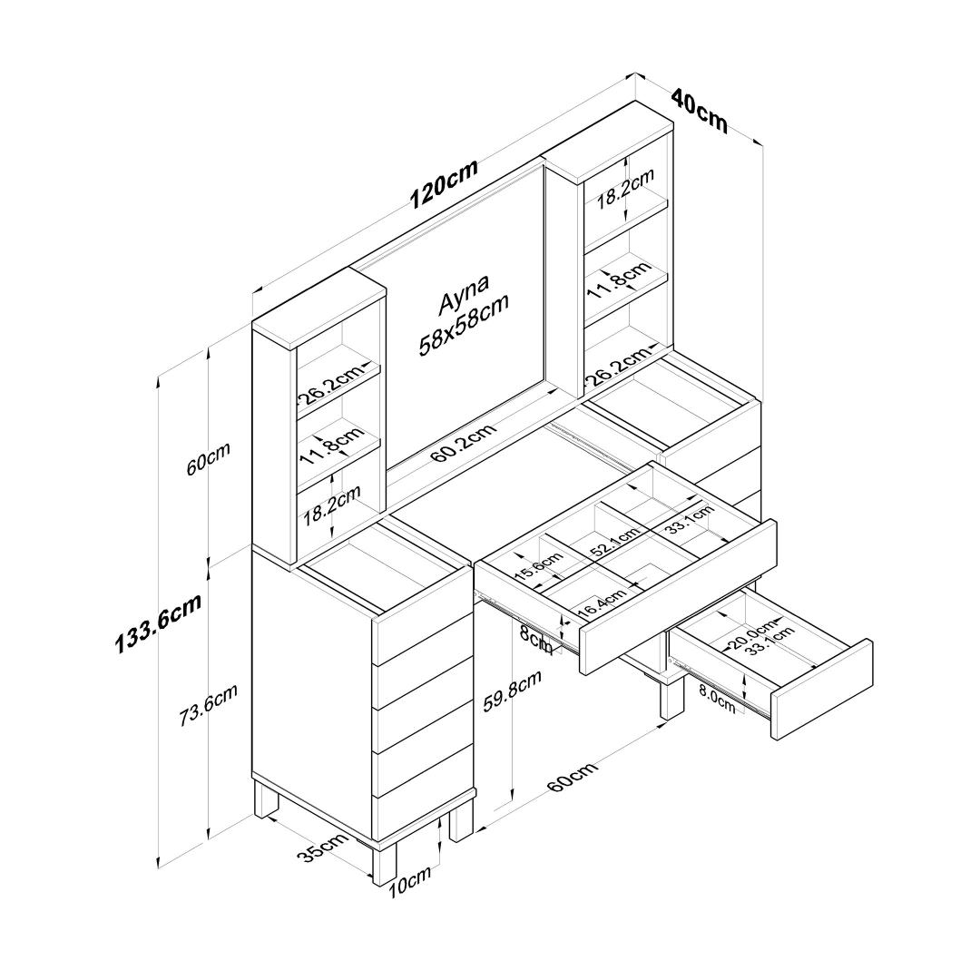Olenemata sellest, kas oled meigihuviline või otsid lihtsalt stiilset viisi oma ilutoodete hoidmiseks, on meie meigilaud ideaalne täiendus sinu koju. Täiendava hoiuruumi ja võimalusega see seina kinnitada saad kohandada oma ilunurka vastavalt oma vajadustele ja stiilile.