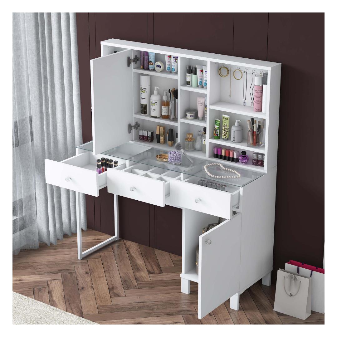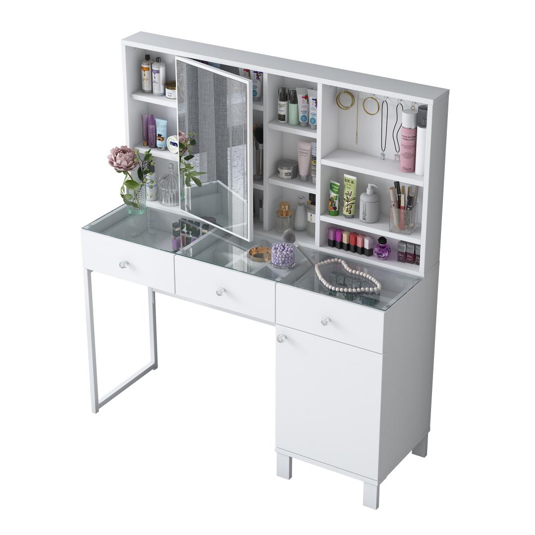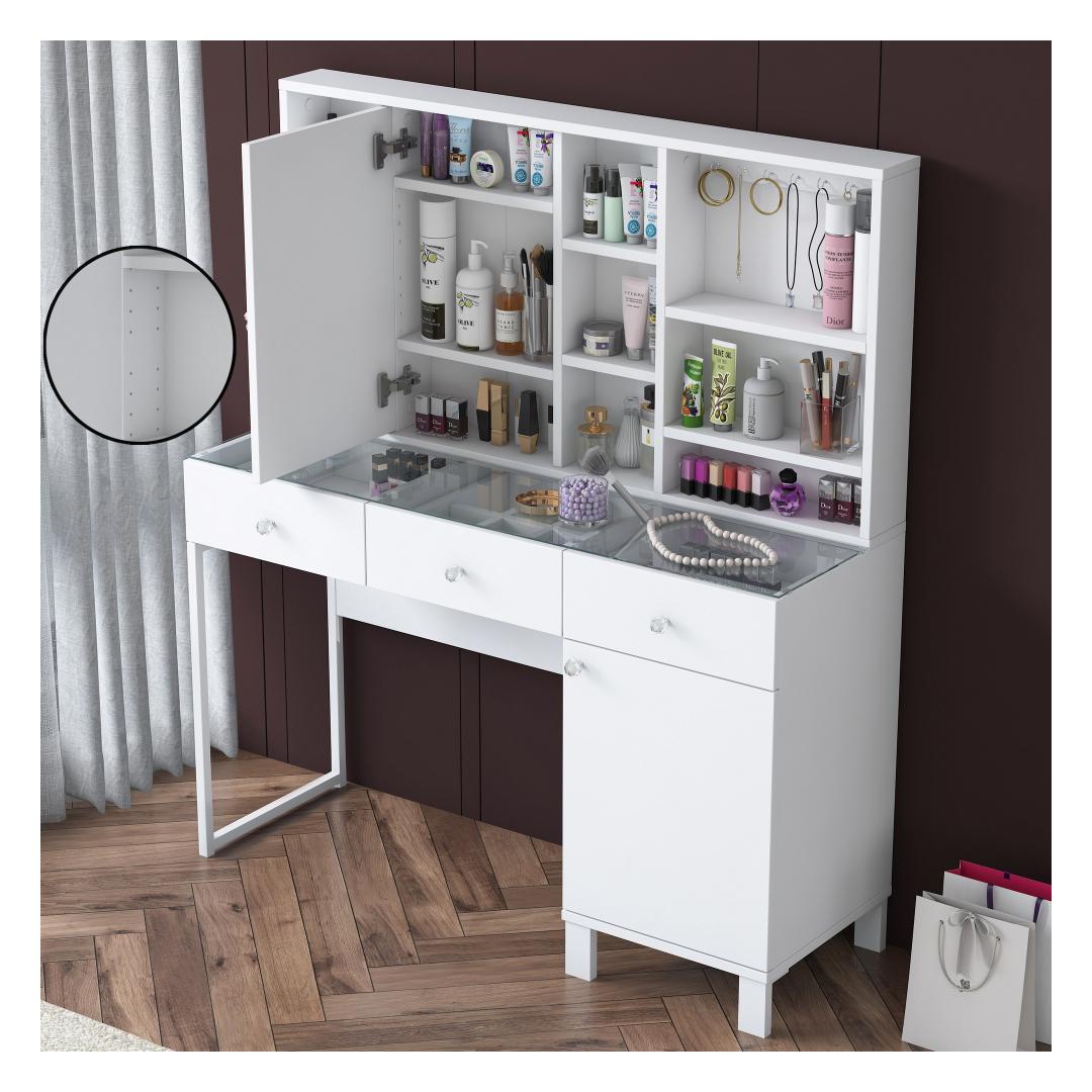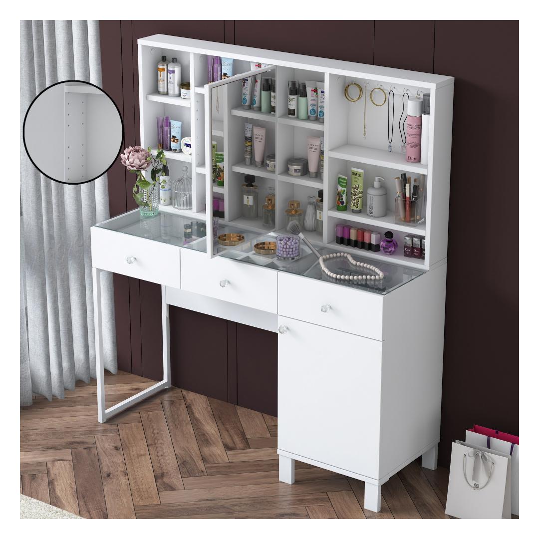 Olenemata sellest, kas oled meigihuviline või lihtsalt otsid spetsiaalset kohta hommikul ettevalmistamiseks, on meie meigilaud ideaalne täiendus sinu koju. Oma mitmekesise disaini ja neutraalse valge värviga sulandub see sujuvalt igasse sisustustüüpi, luues šika ja kutsuva ilunurga, kus sulle meeldib aega veeta.