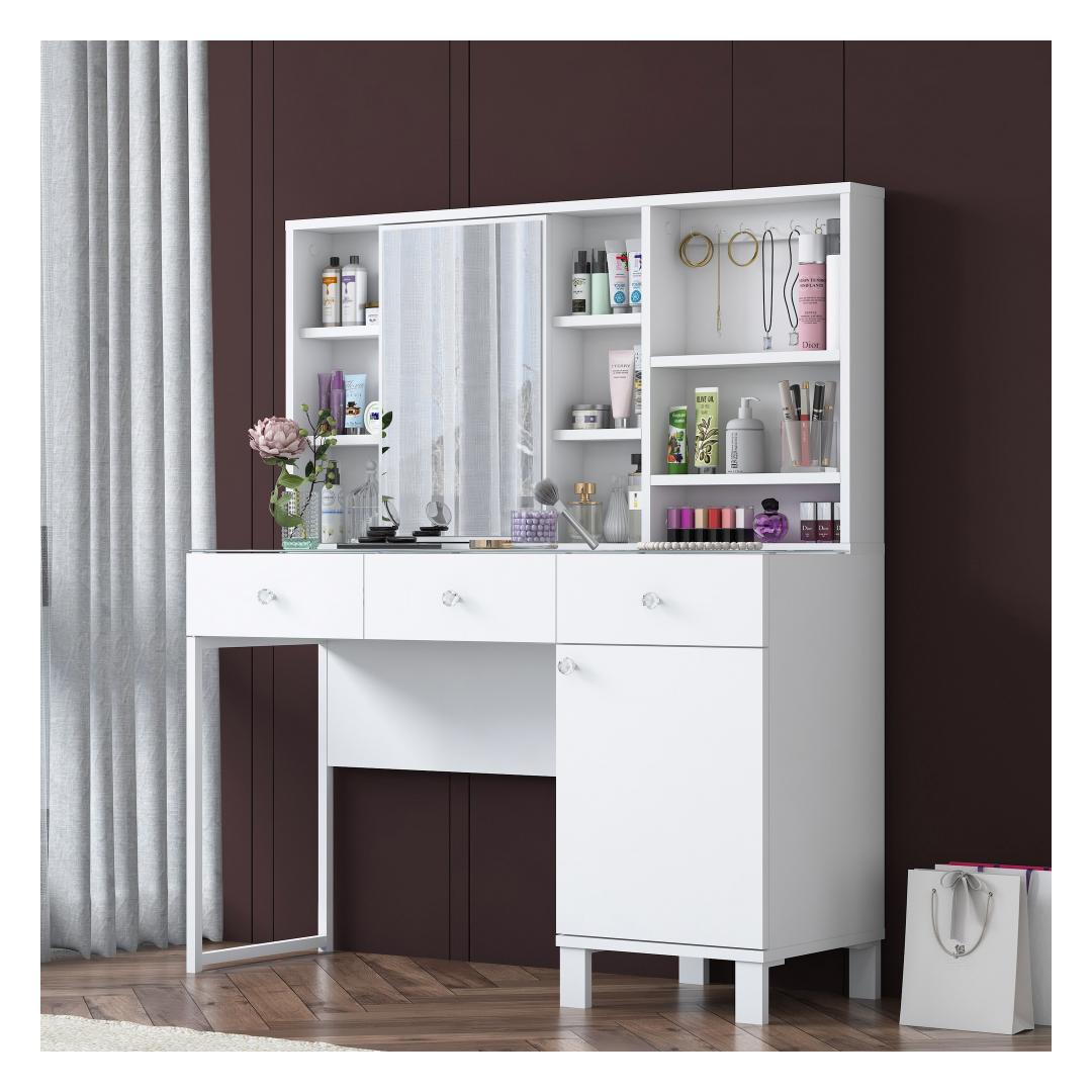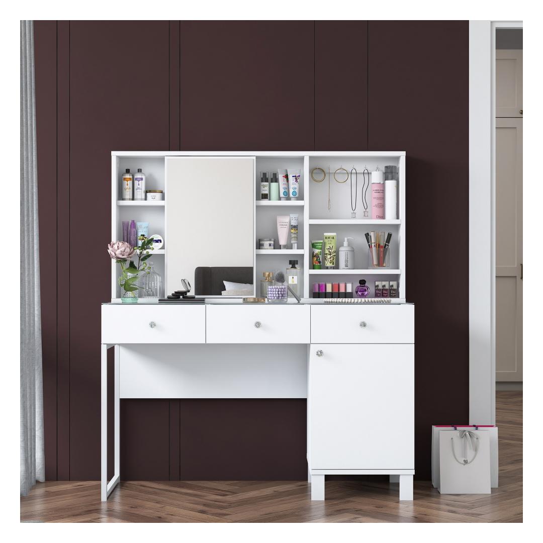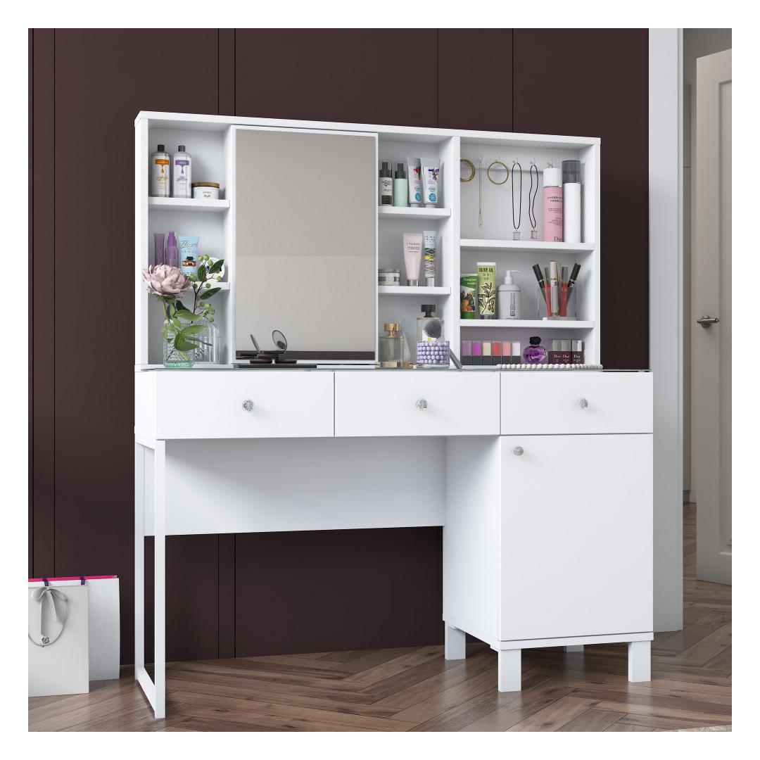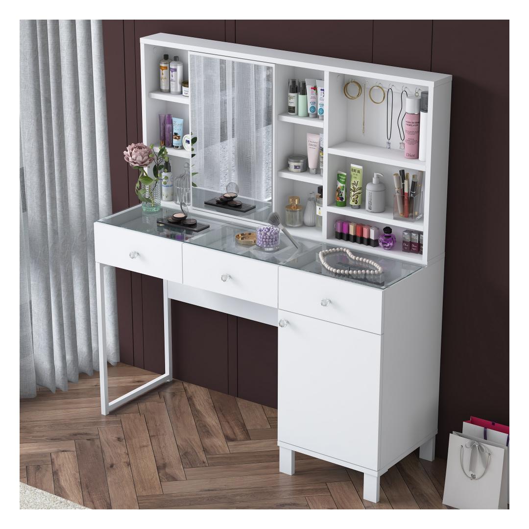 Olenemata sellest, kas oled meigihuviline või lihtsalt otsid spetsiaalset kohta hommikul ettevalmistamiseks, on meie meigilaud ideaalne täiendus sinu koju. Oma mitmekesise disaini ja neutraalse valge värviga sulandub see sujuvalt igasse sisustustüüpi, luues šika ja kutsuva ilunurga, kus sulle meeldib aega veeta.