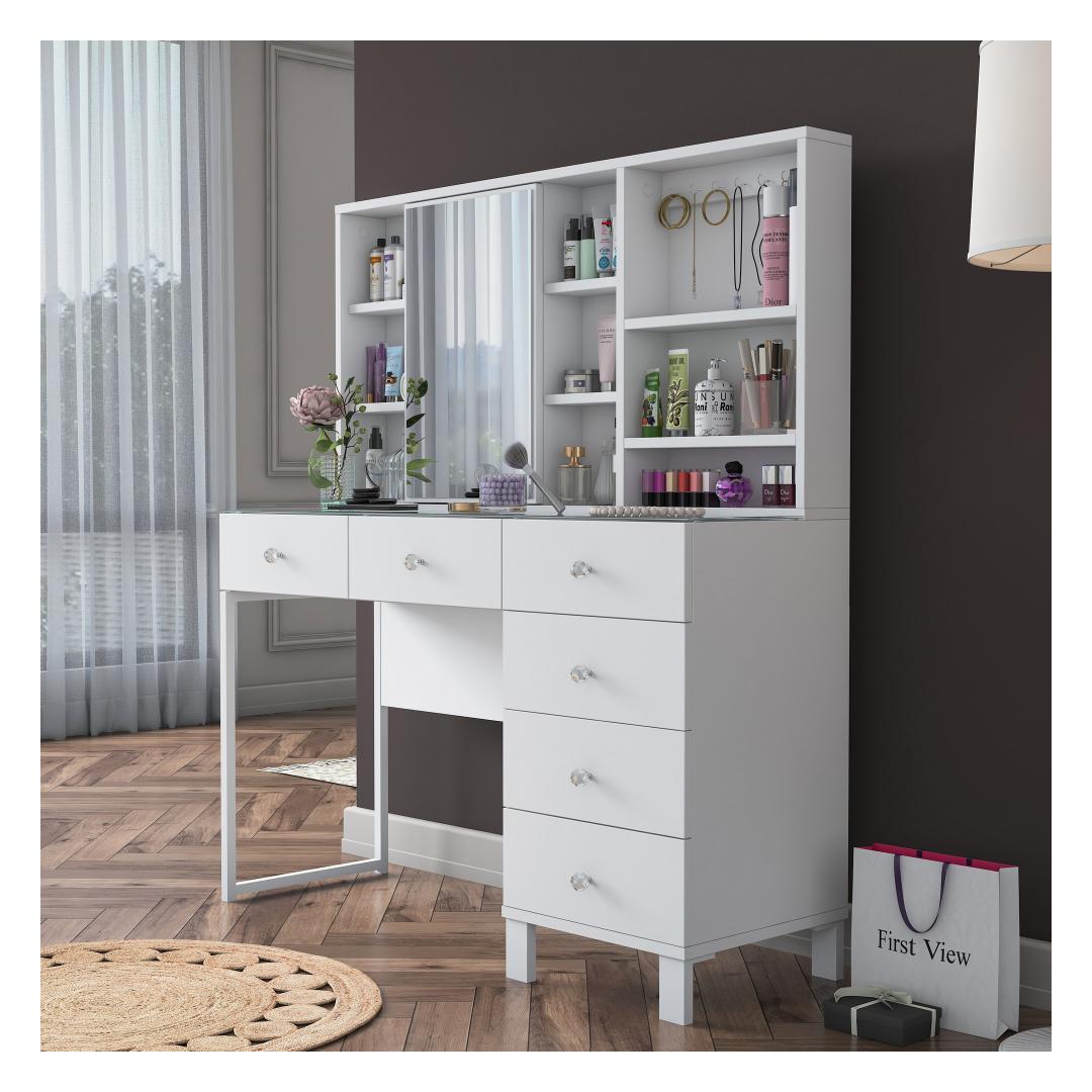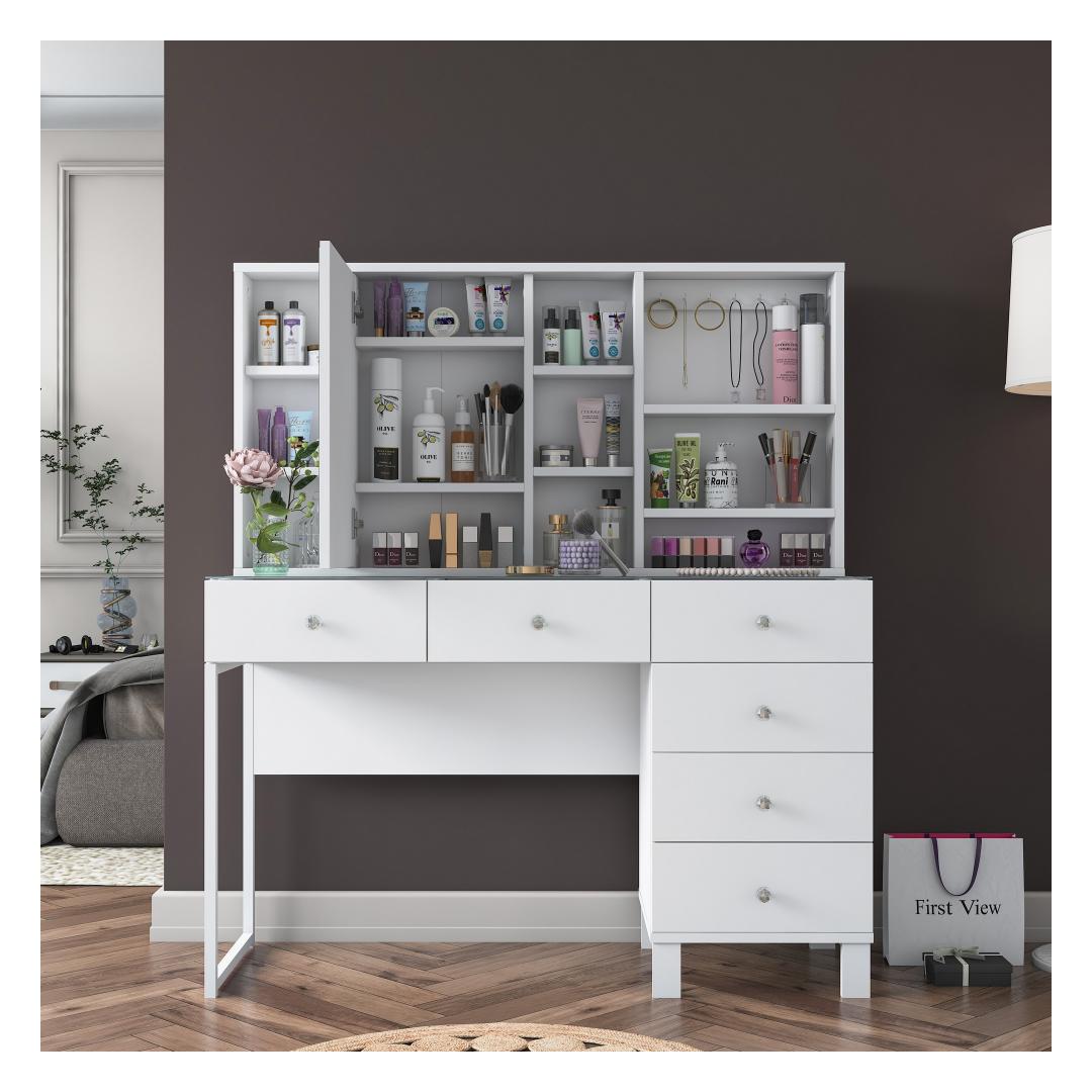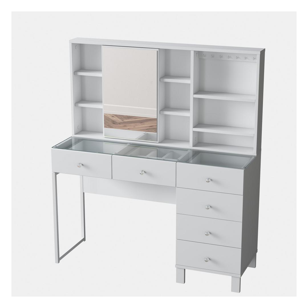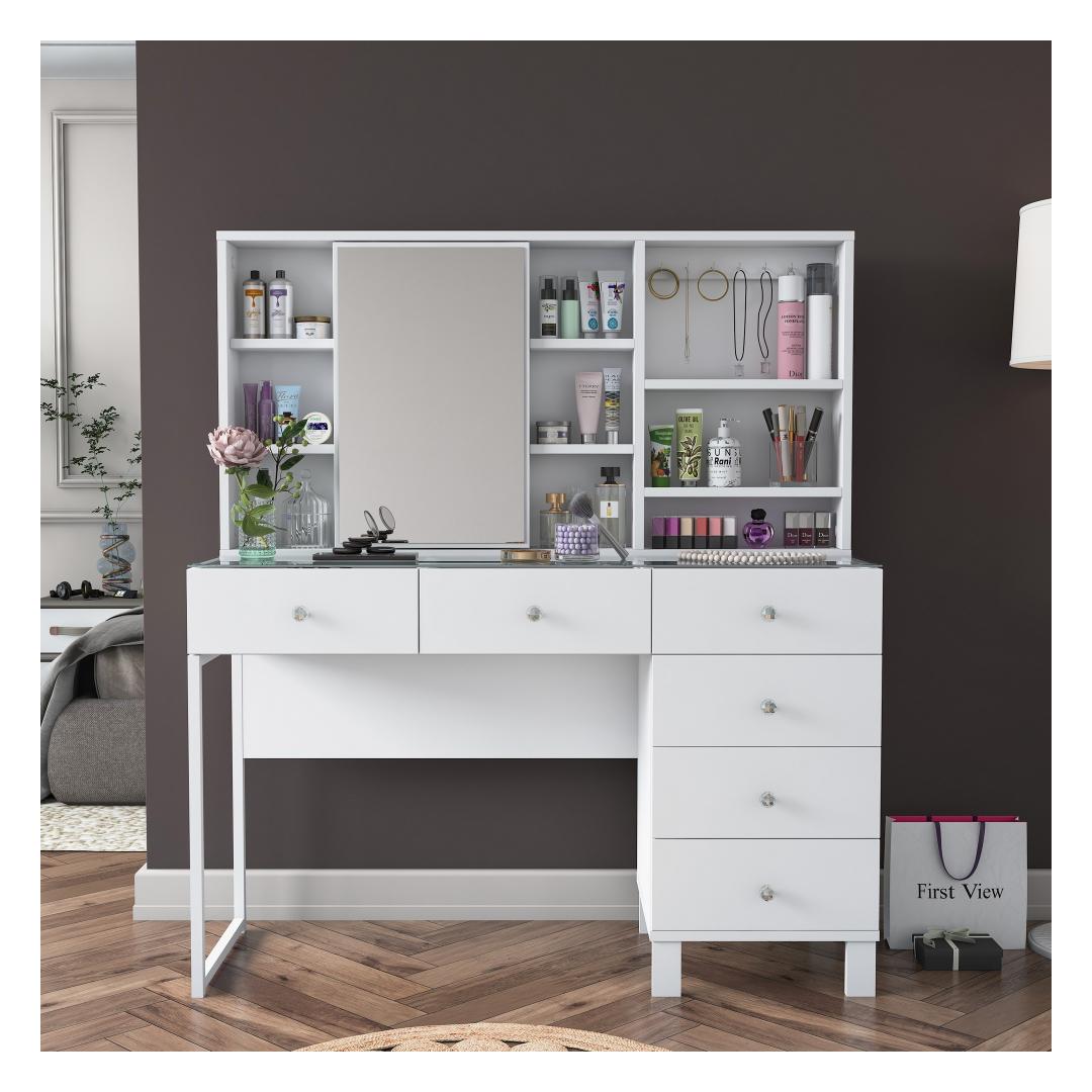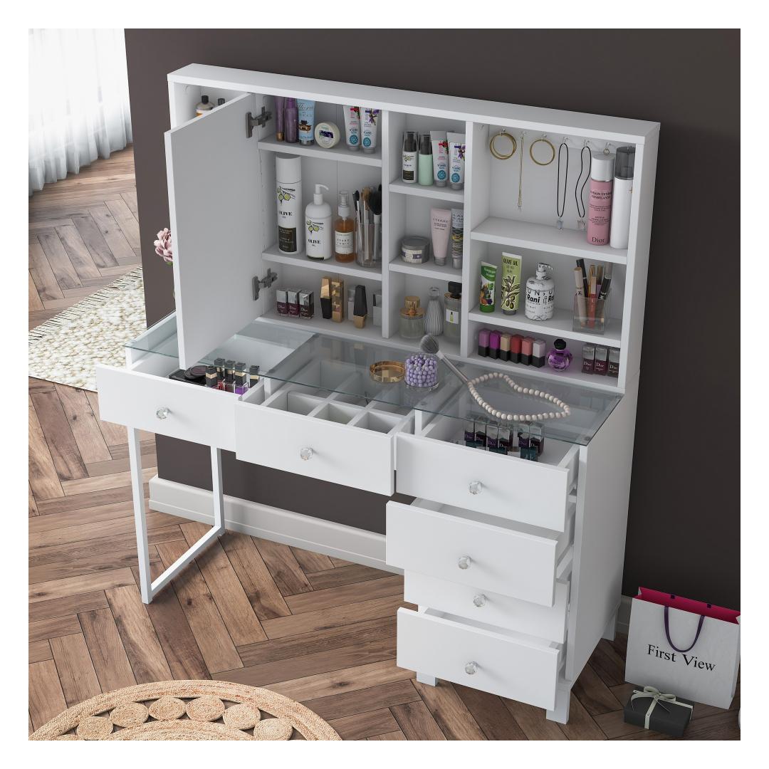 Ütle hüvasti segastele tööpindadele ja sahtlitele. Meie meigilaud sisaldab arvukalt riiuleid ja lisaruumi, et hoida kõik sinu ilutooted korralikult organiseeritud ja käeulatuses. Alates meigipintslitest kuni nahahooldustoodeteni, kõigil on oma määratud koht.