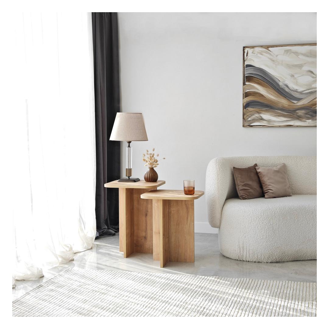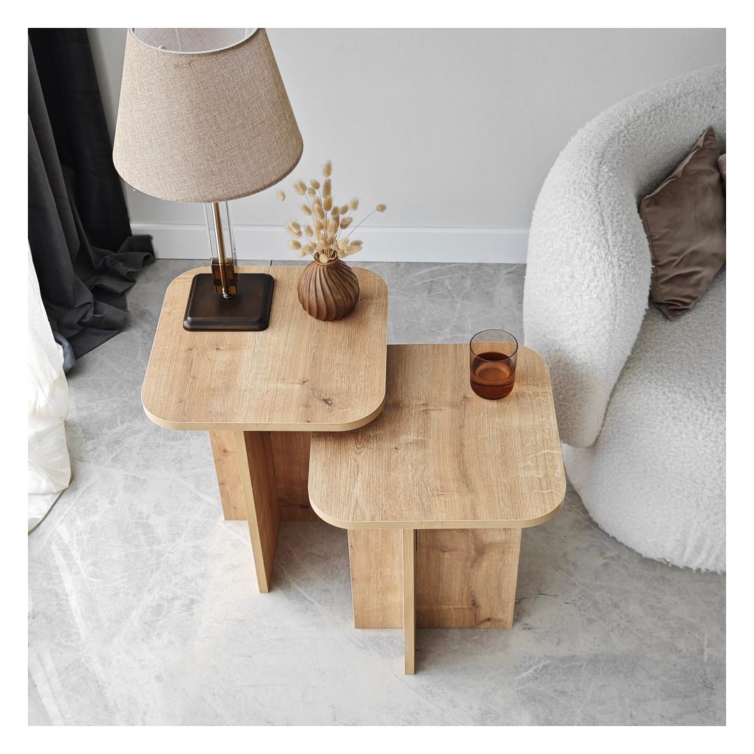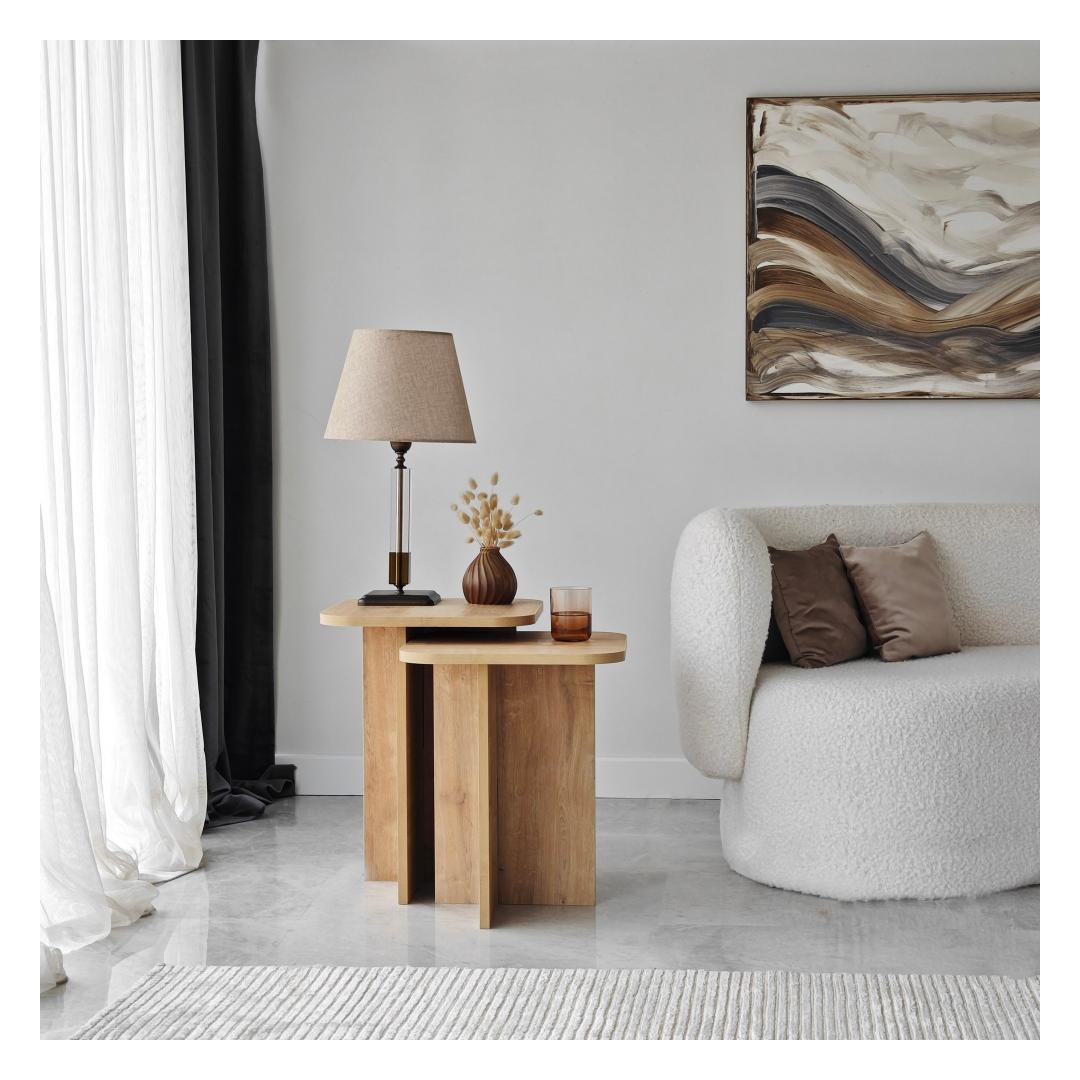 Kahe erineva suurusega komplekt pakub rohkelt hoiuruumi, et hoida oma hädavajalikud esemed käeulatuses. Olgu selleks siis teie lemmikraamat, tass kohvi või dekoratiivsed esemed, need lauad pakuvad ideaalset kohta oma isikliku stiili esitlemiseks.
