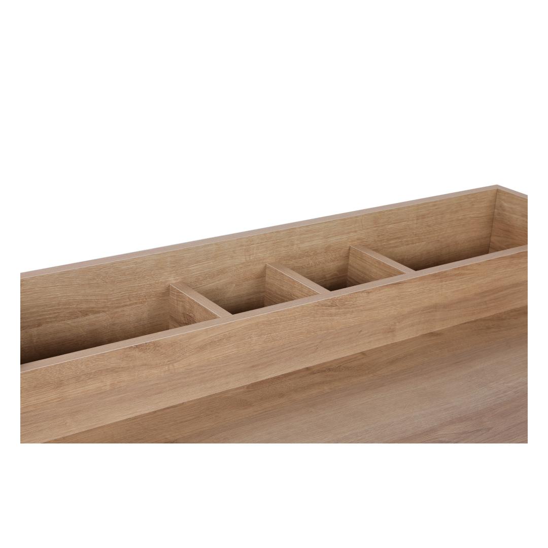 Transformeeri oma hommikune rutiin meie stiilse meigilaua abilAlusta oma päeva õigesti meie uimastava meigilauaga. See kaasaegse ja uuendusliku kontseptsiooniga laud tõstab teie hommikuse rutiini uuele tasemele. Olenemata sellest, kas eelistate tööstuslikku, skandinaavia või maalähedast stiili, on meie meigilaud ideaalne täiendus igasse magamistuppa või garderoobi.Kõrgendage oma ruumi esmaklassilise kvaliteedigaMeie meigilaud on valmistatud 100% melamiiniga kaetud puitlaastplaadist, mis on loodud kestma. 18 mm paksus tagab vastupidavuse ja stabiilsuse, samal ajal kui metalljalad lisavad elegantsi. Pähklipuu ja musta värvikombinatsiooniga väljendab see laud rafineeritust ja stiilsust. Püsige organiseerituna tänu rohkele hoiuruumileÜtle hüvasti segastele töölaudadele ja tere organiseeritud õndsusele. Meie meigilaual on arvukad riiulid, mis pakuvad piisavalt ruumi kõigi teie ilutarvete hoidmiseks. Alates meigipintslitest kuni nahahooldustoodeteni on kõigel oma koht. Lisaks lisab lauale lisastabiilsust ja turvalisust võimalus kinnitada laud seina külge. Tehnilised üksikasjad:Materjal: Materjal: Materjal: Materjal: Materjal: Materjal: Materjal: Materjal: materjal: 100% melamiiniga kaetud puitlaastplaatPaksus: 18mmMetallist jalad lisavad stabiilsust ja elegantsustLaius: 100cm, kõrgus: 50cm, sügavus: 89cm.Arvukad riiulid optimaalseks hoiustamiseksVõimalik kinnitada seinale, et lisada stabiilsustVärv: pähkelpuu ja mustVälistage oma hommikune rutiin juba tänaVärskendage oma ruumi ja täiustage oma hommikuse rutiini meie stiilse meigilauaga. Tänu kõrgekvaliteedilisele konstruktsioonile, rohkele hoiuruumile ja moodsale disainile on see laud iga iluhuvilise jaoks hädavajalik. Ärge rahulduge tavalise, valige erakordne. Tellige oma meigilaud kohe ja muutke oma ruum stiili ja organiseerituse pühapaigaks. Värv: Walnut Black