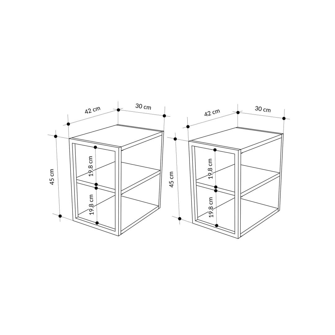 30 cm laiuse, 45 cm kõrguse ja 42 cm sügavusega pakuvad need kõrvalauad piisavalt ruumi teie asjade jaoks. 19,8 cm kõrgune riiul annab lisaruumi, samas kui 12 kg kandevõime tagab, et saate oma esemeid laudadele mureta asetada.