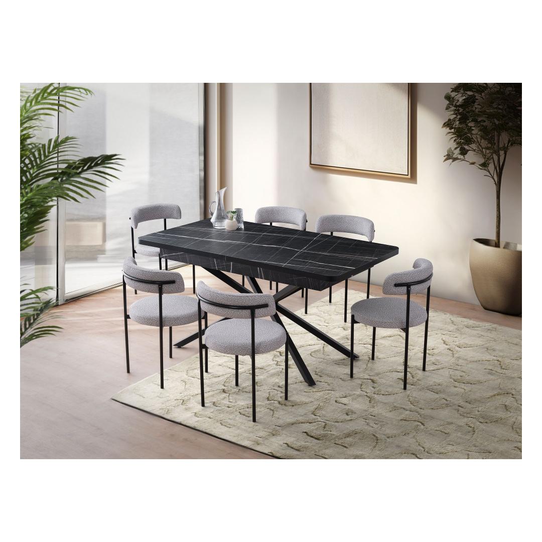 Muuda oma söögituba stiilseks ja funktsionaalseks ruumiks meie pikendatava söögilaua abil. See kaasaegne mööbliese on loodud muljet avaldama oma elegantse musta ja valge värvikombinatsiooniga, muutes selle mitmekülgseks lisandiks igasse kodu sisustusse.