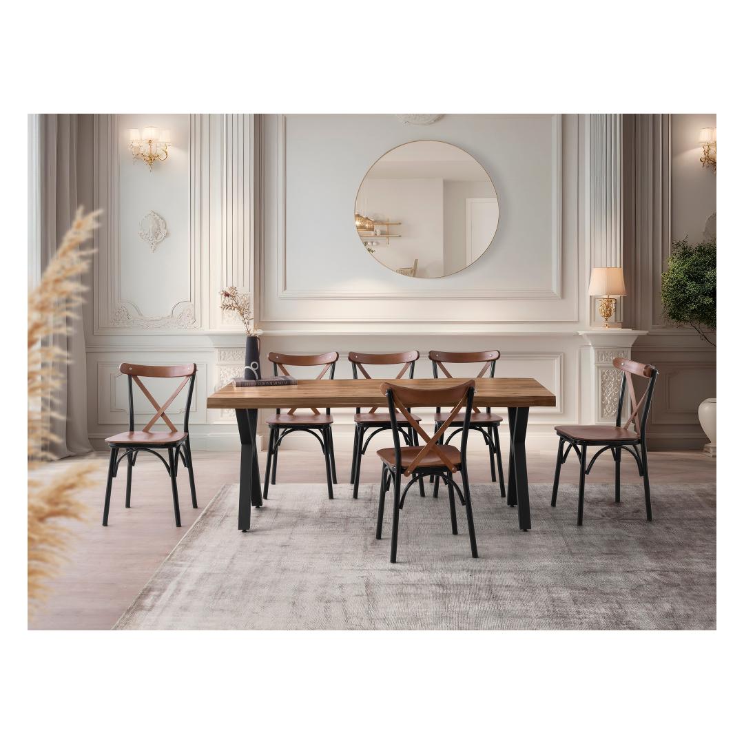 Selle laua vastupidav konstruktsioon tagab stabiilsuse ja vastupidavuse, samas kui stiilne disain lisab teie söögitoa sisekujundusele keerukust. Pähkli värv lisab kosmosele soojust ja rikkalikkust, luues teile ja teie külalistele tervitava atmosfääri.