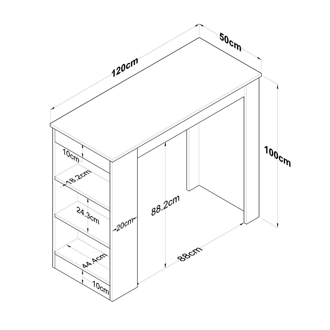 Meie köögilaua avar riiul pakub rohkelt hoiuruumi teie köögi esmatarbekaupade jaoks. Riiul, mille mõõtmed on 44. 4 cm lai, 24. 3 cm kõrgus ja 18. 2 cm sügavus, võimaldab teil hoida oma kokaraamatuid, söögiriistu ja muid esemeid käeulatuses.