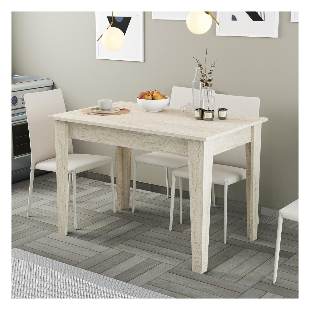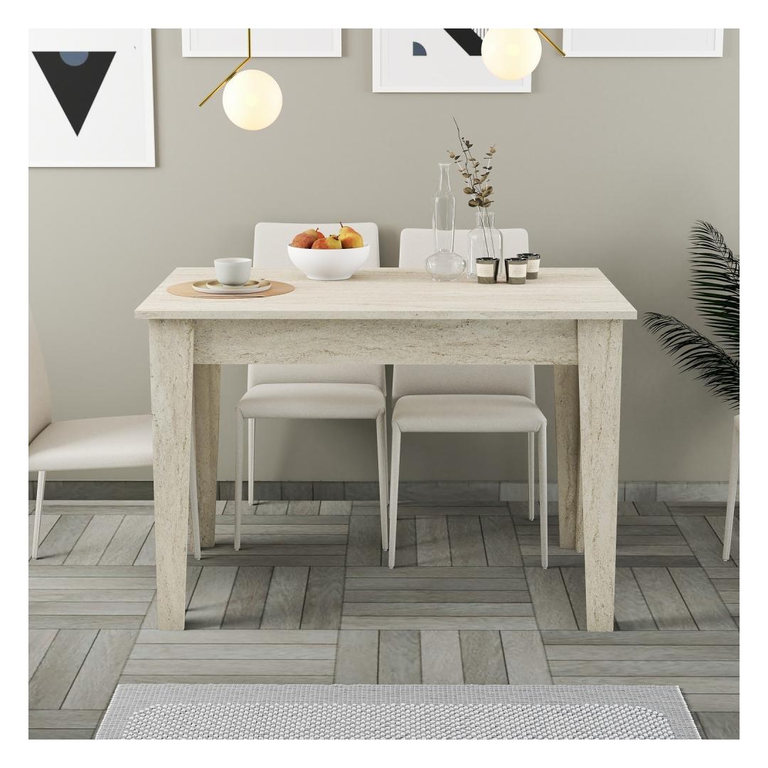 See köögilaud on valmistatud 100% melamiiniga kaetud osakeste tahvlilt. 18 mm paksus tagab vastupidavuse ja stabiilsuse, samas kui klanitud disain lisab teie kodukaunistusele kaasaegse puudutuse. Travertiini värv lisab luksust, muutes selle laua igas köögis avalduse.