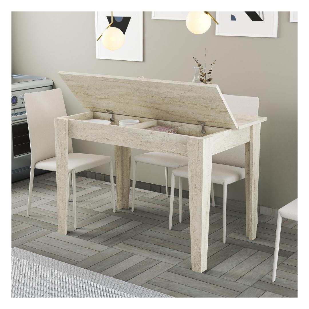 Muutke oma köök meie vapustava marmorist köögilauaga luksuslikuks söögikohaks. Kihekujuline disain ja elegantne travertiinvärv tõstavad teie kodu õhkkonda, luues sooja ja kutsuva õhkkonna peretoitudeks ja koosviibimisteks.
