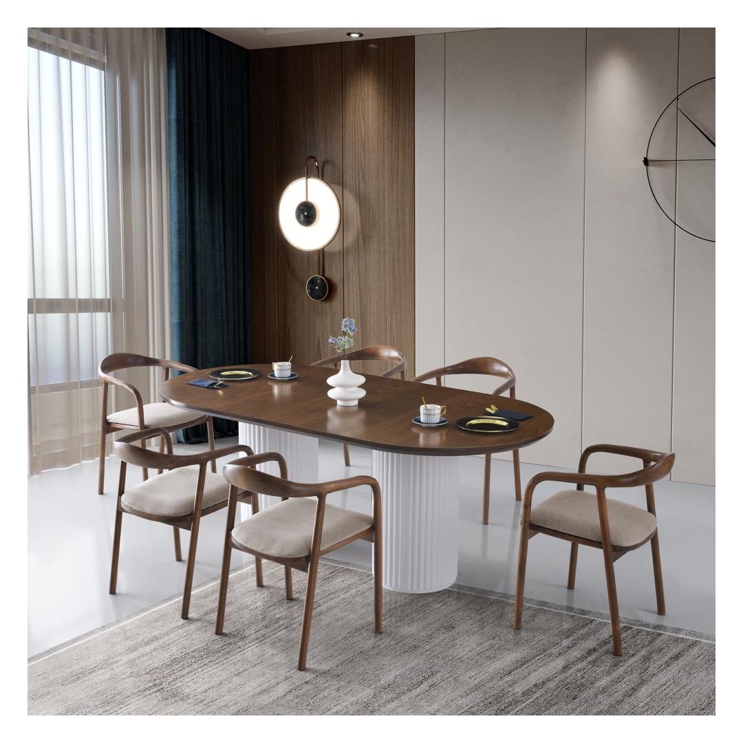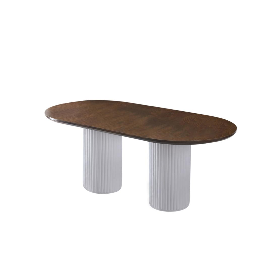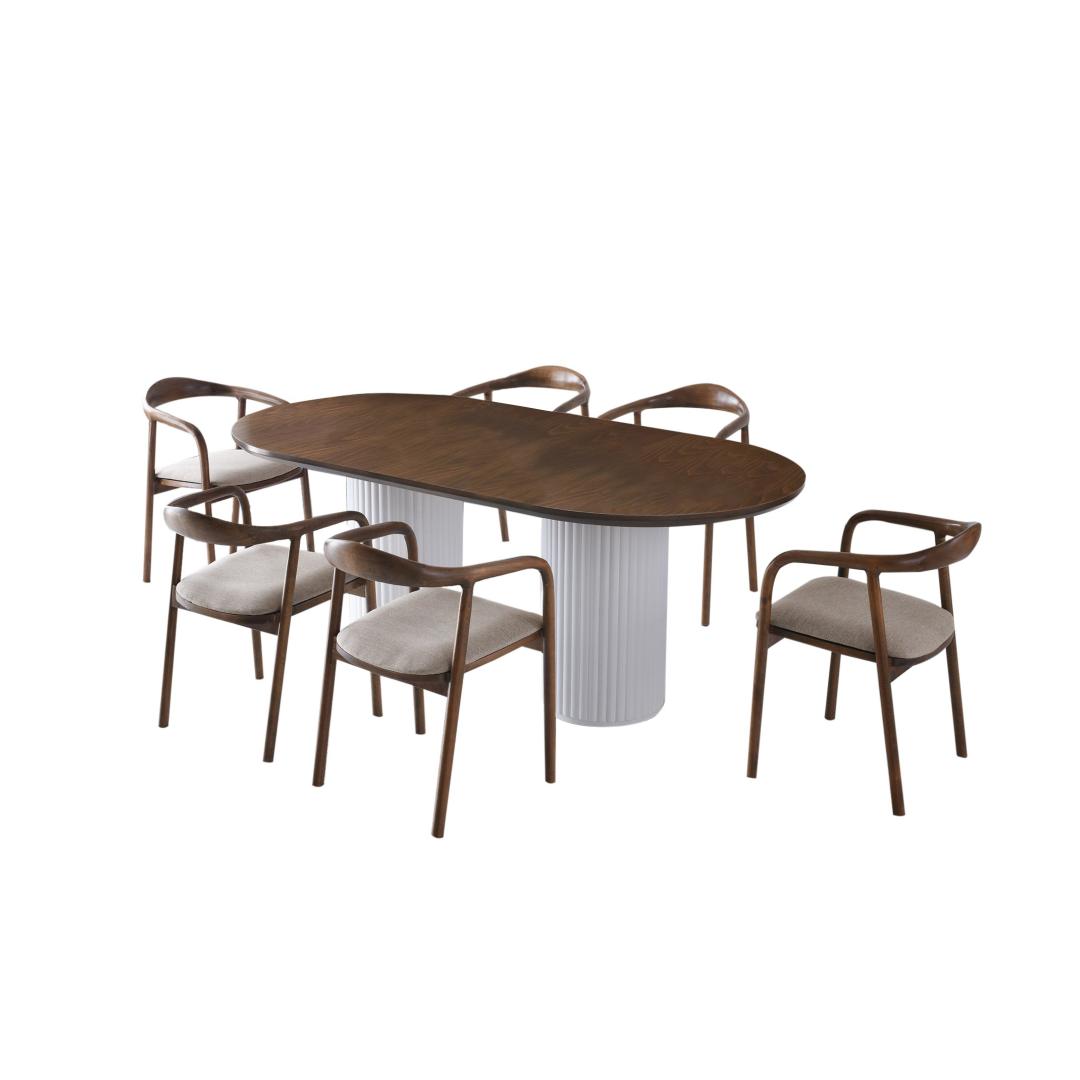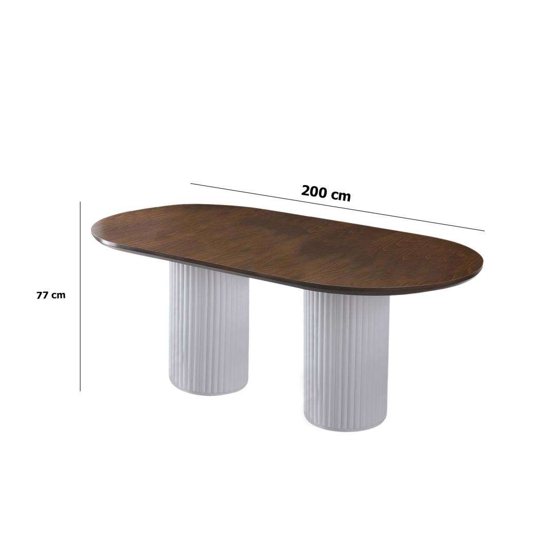 Meie söögilaud on elegantse ja minimalistliku disainiga, mis sobitub vaevata mis tahes interjööri stiiliga. Pähklipuu ja valge värvi kombinatsioon lisab teie ruumile elegantsi ja rafineeritust, muutes selle teie söögitoa ideaalseks keskpunktiks.