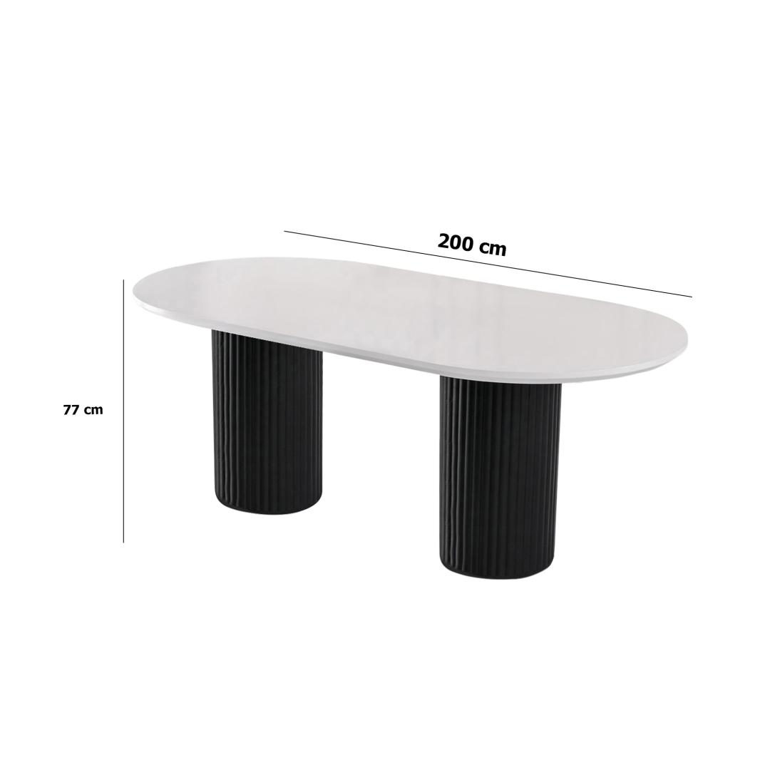 Suurepärase 200 cm laiuse, 77 cm kõrguse ja 100 cm sügavusega laud pakub piisavalt ruumi kõigi teie söögisaali vajaduste rahuldamiseks. Olenemata sellest, kas korraldate suurejoonelist õhtusöögipidu või naudite mõnusat peretoitu, meie söögilaud mahutab kõiki hõlpsasti.