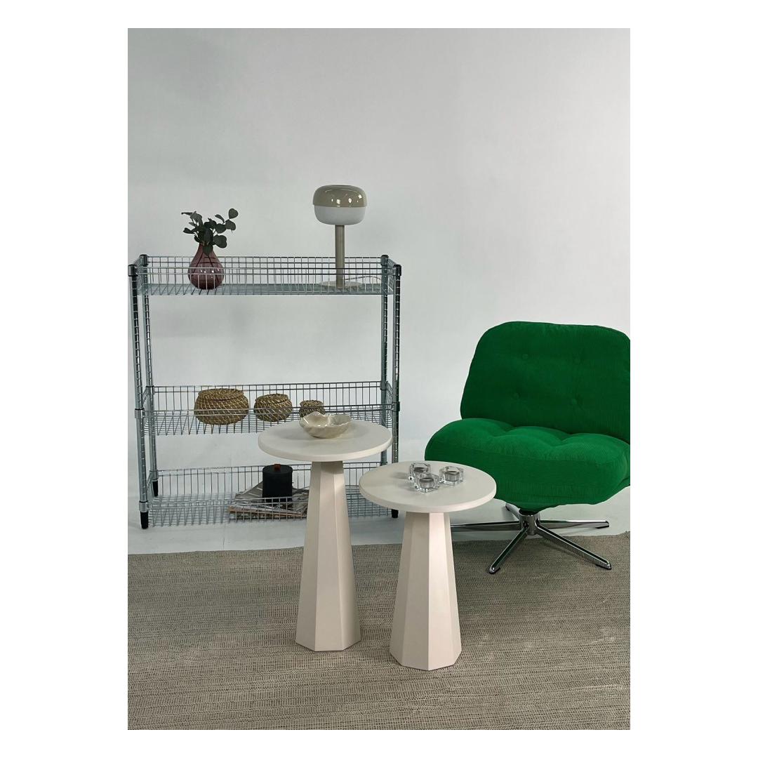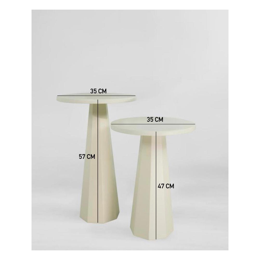 Keskmise suurusega 35x52x35 cm ja väikese suurusega 35x47x35 cm, need lauad on ideaalne kombinatsioon praktilisusest ja stiilist. Kasuta neid oma lemmik dekoratiivesemete väljapanekuks, hommikukohvi hoidmiseks või lihtsalt elegantsi lisamiseks oma ruumi.