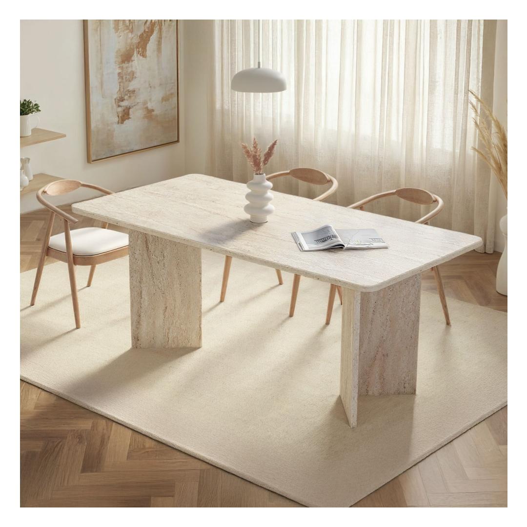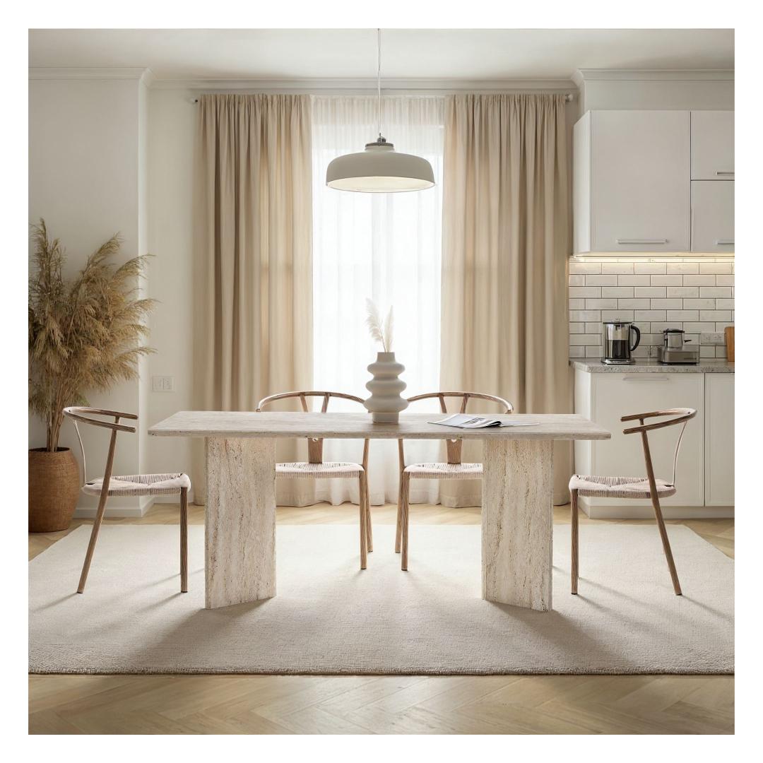 Uuenda oma söögituba meie travertiini söögilauaga ja loo ruum, mis kiirgab luksust ja rafineeritust. Muuda iga eine eriliseks sündmuseks selle elegantse ja stiilse mööbliesemega. Tellige oma juba täna ja tõsta oma söögikogemus täiesti uuele tasemele.