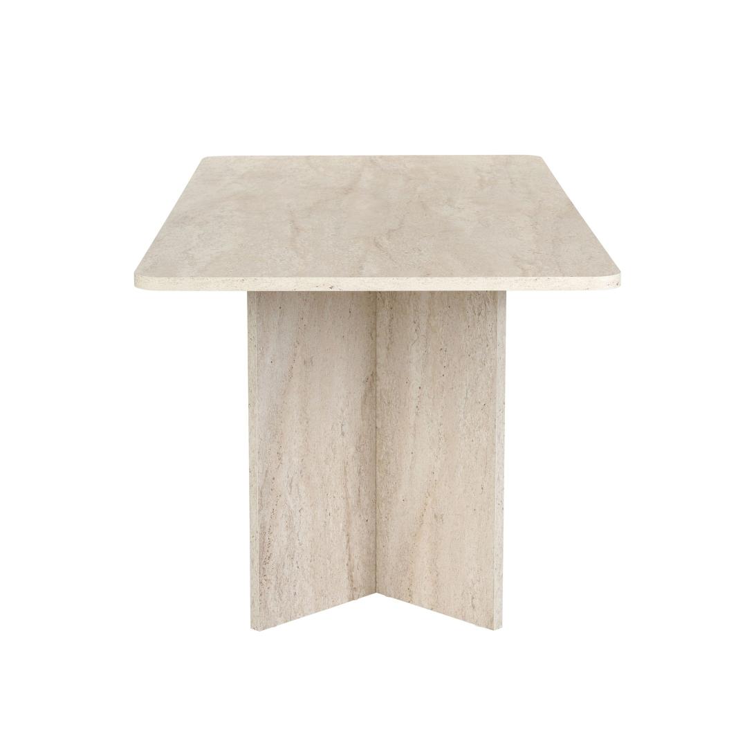 Muuda oma söögituba luksuslikuks ja elegantseks ruumiks meie hämmastava travertiini söögilaua abil. Valmistatud 100% melamiinkattega puitlaastplaadist, kiirgab see laud rafineeritust ja stiili. Ühtlane beež värv koos modernse marmorikujundusega lisab sinu sisustusele värskendavat puudutust, muutes selle ideaalseks keskpunktiks peresündmustel ja õhtusöökidel.
