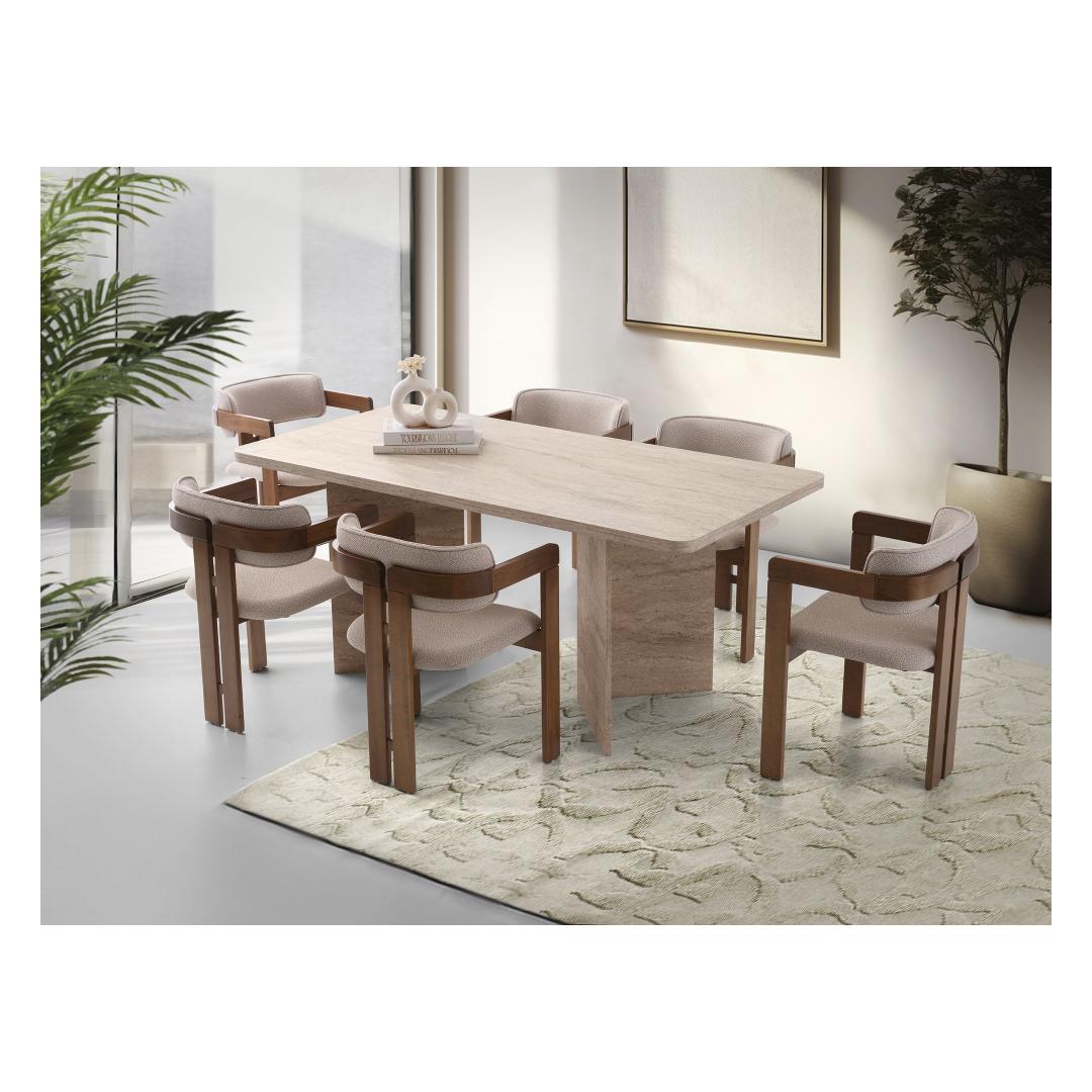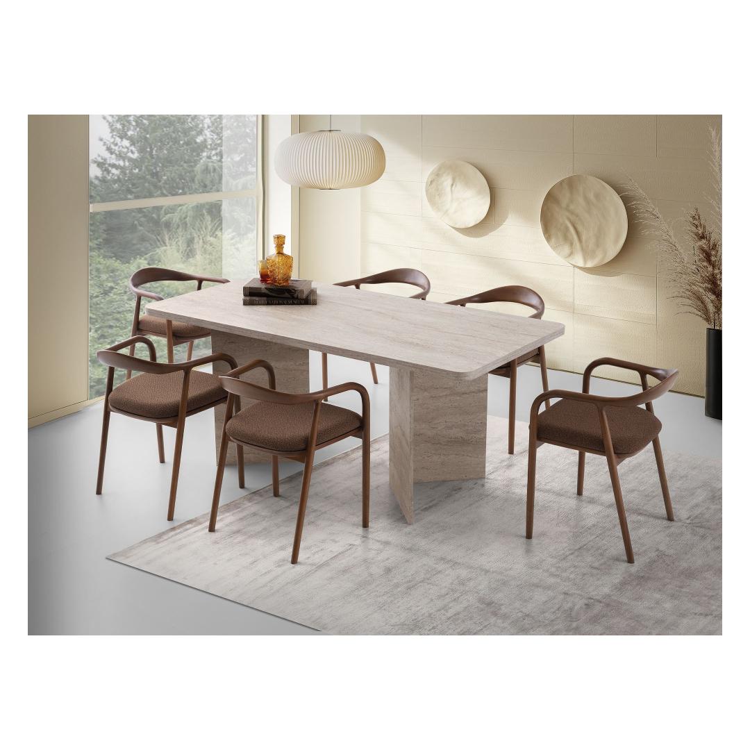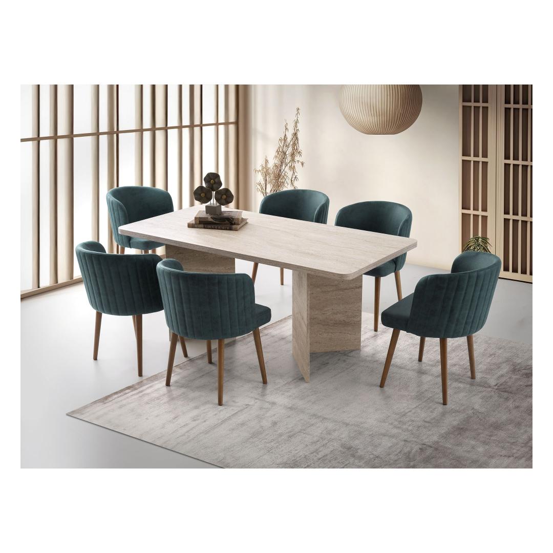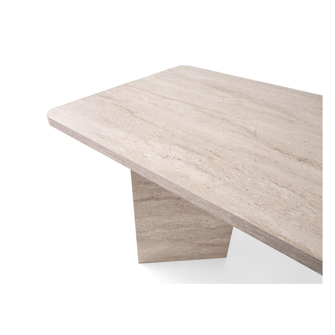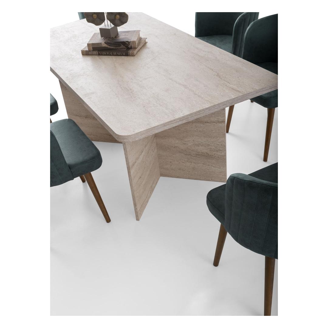 Muuda oma söögituba stiilseks ja kutsuvaks ruumiks meie hämmastava söögilaua abil. Valmistatud 100% melamiinkattega puitlaastplaadist, on see laud mitte ainult vastupidav, vaid ka uskumatult elegantne. Travertiini värv lisab igasse ruumi natuke rafineeritust, muutes selle ideaalseks keskpunktiks peresündmusteks ja õhtusöökideks.