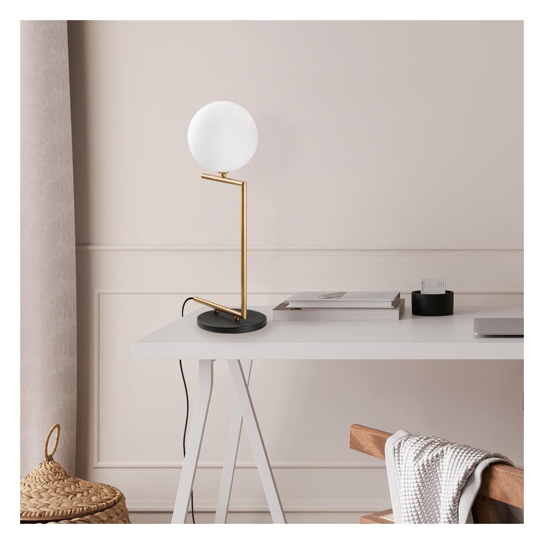 Selle laualambi metallkeha kiirgab luksust ja klassi, muutes selle ideaalseks lisandiks igasse kaasaegsesse või traditsioonilisse keskkonda. Lambi voolujoonelised jooned ja kuldne viimistlus täiustavad igasugust sisustust, lisades teie ruumi glamuurset puudutust.