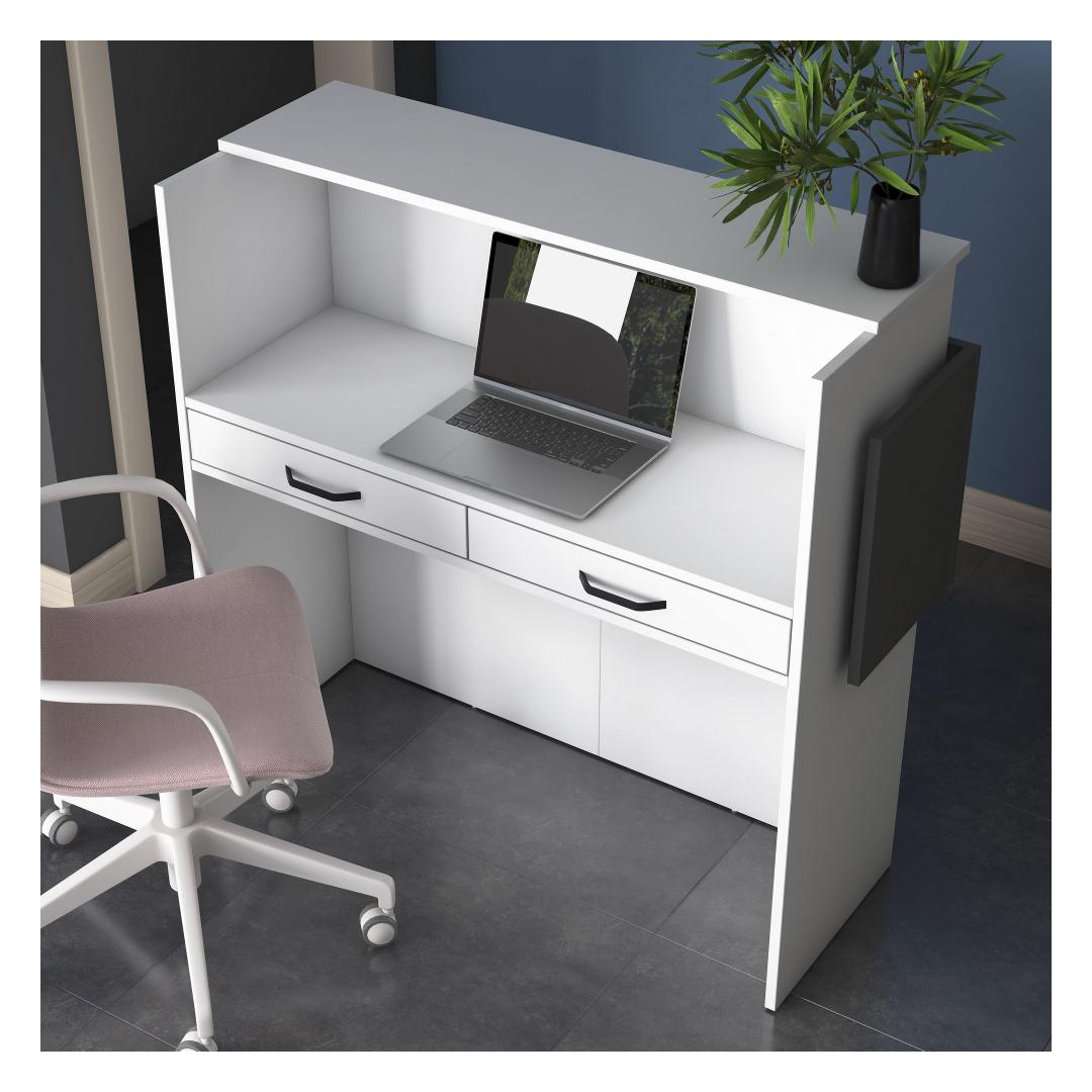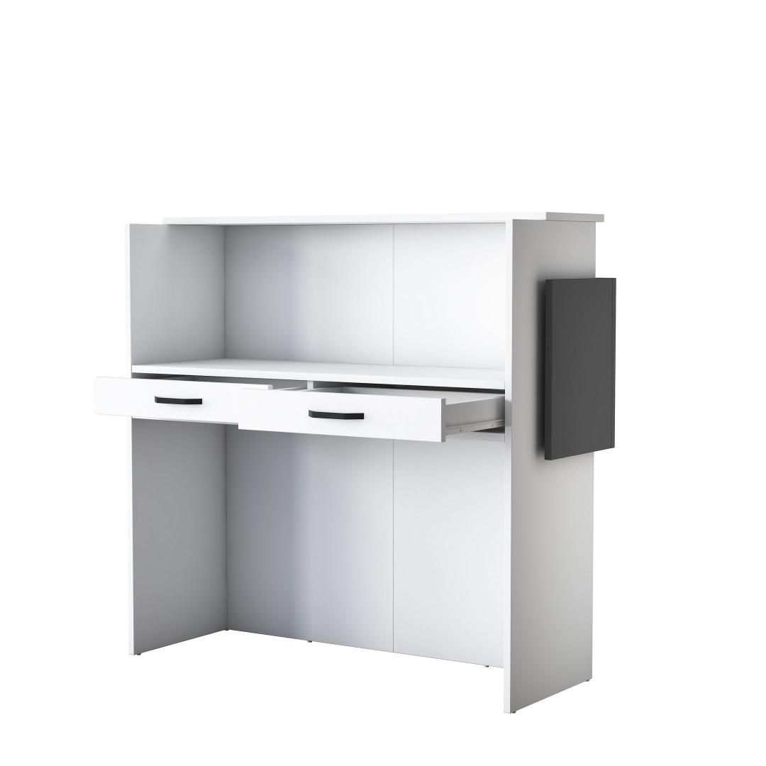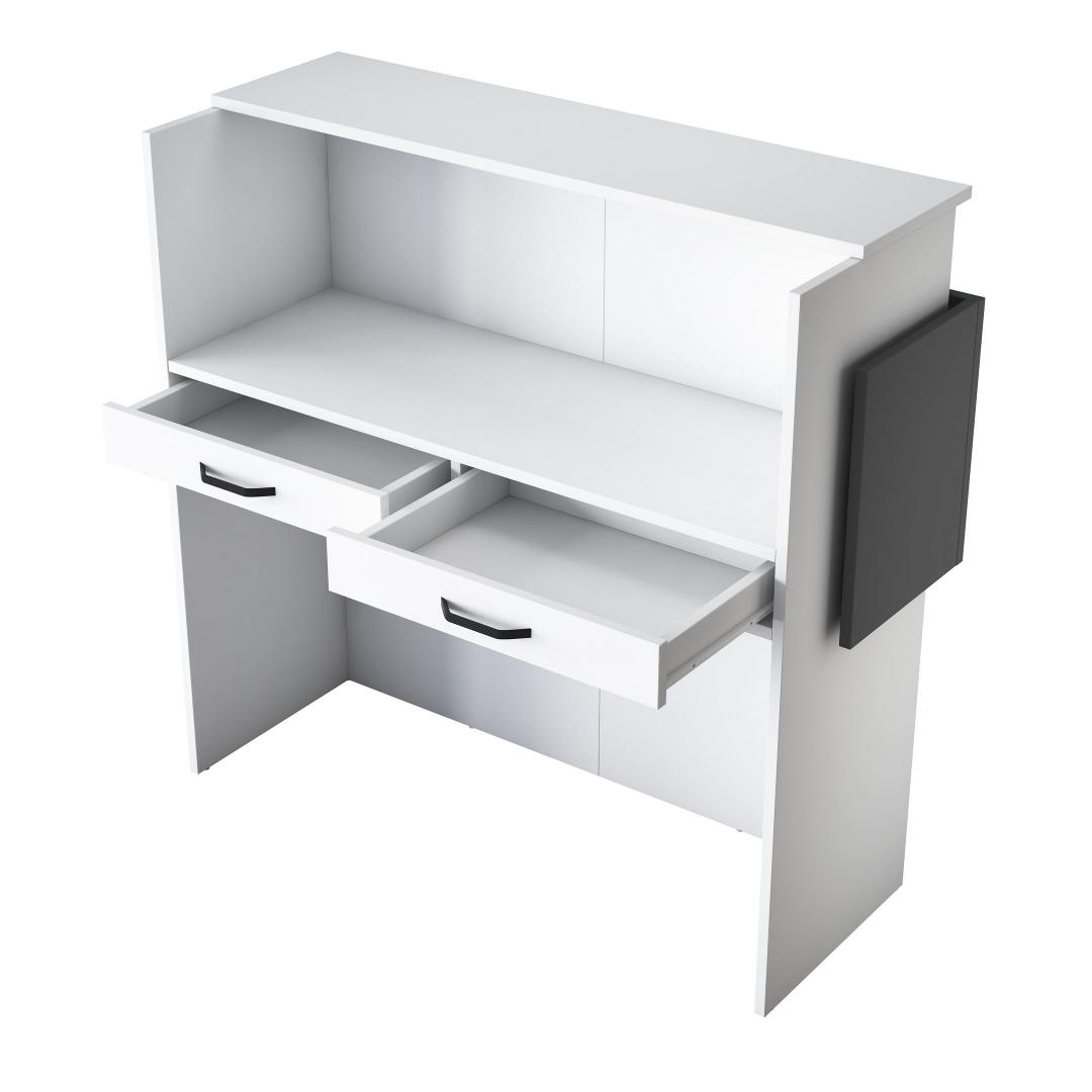 Vastuvõtulaud ei ole lihtsalt mööblitükk, see on stiili ja professionaalsuse avaldus. Selle valge ja marmorist värvi kaunis kombinatsioon loob külalislahke atmosfääri, mis paneb teie külalised kohe rahule. Olenemata sellest, kas teil on hotell, salong või kontor, on see laud ideaalne täiendus teie vastuvõtualale.