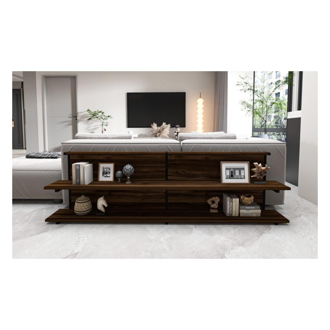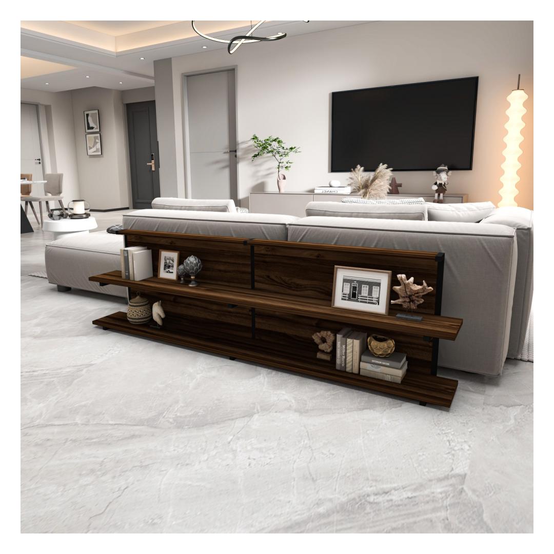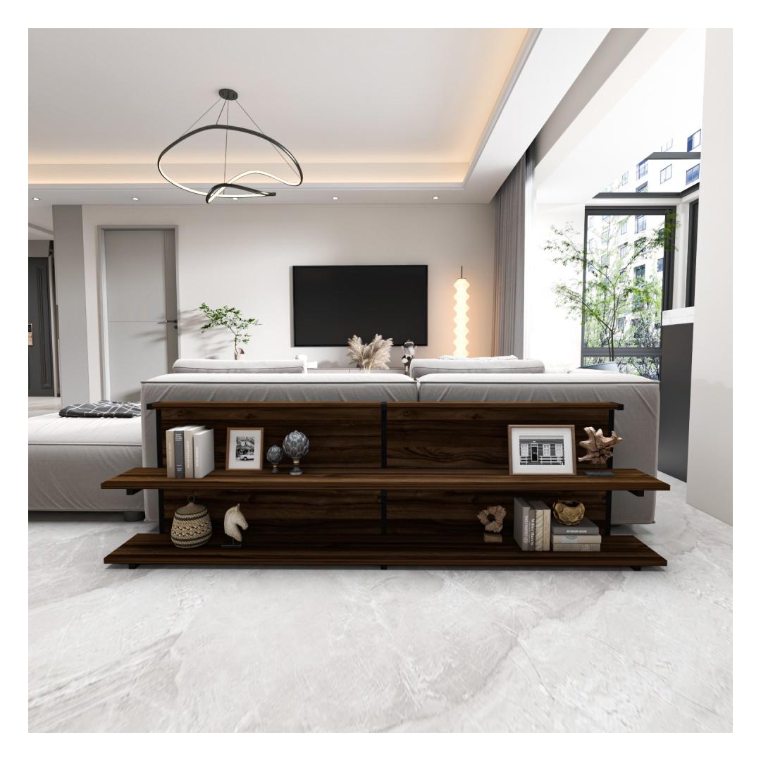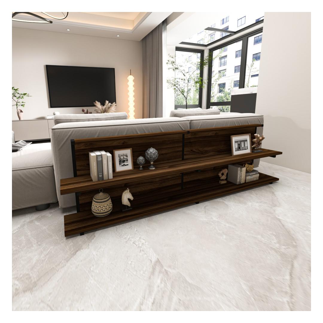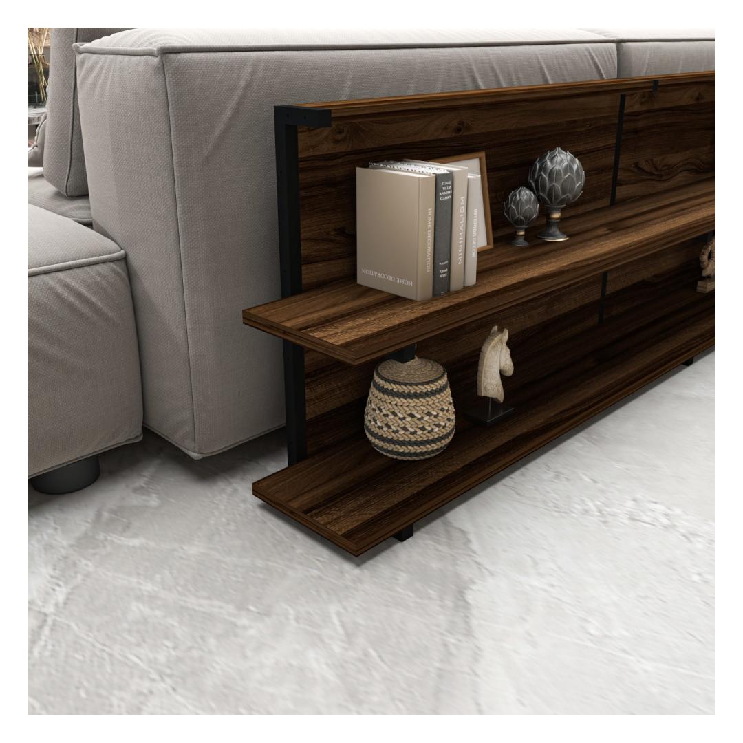 Tutvustame meie uimastavat ja mitmekülgset küljelaua, mis on kohustuslik täiendus igasse moodsasse koju. See peen tükk on loodud teie eluruumi kütkestamiseks ja kaunistamiseks, tuues nii stiili kui ka funktsionaalsust. Tõstke oma elutubaParandage oma kodu atmosfääri meie küljelauaga, mis on hoolikalt valmistatud elegantsi ja rafineeritust õhkima. Selle elegantne ja kaasaegne disain sulandub vaevata mis tahes sisekujundusega, muutes selle ideaalseks täienduseks teie elutuppa, magamistuppa või kontorisse.Võrratu kvaliteet ja vastupidavusMeie ülima täpsusega valmistatud küljelaud on valmistatud 100% melamiiniga kaetud puitlaastplaadist ja metallist, mis tagab erakordse tugevuse ja vastupidavuse. 18 mm paksus tagab tugeva ja usaldusväärse pinna, mis suudab vastu pidada igapäevasele kasutamisele ja pakkuda teie asjadele pikaajalist tuge. Soojust ja võluKõrvallaud on kaunist pähklipuu värvi, lisades teie eluruumile veidi soojust ja võlu. Rikkalikud toonid ja looduslikud mustrid loovad hubase ja kutsuva atmosfääri, muutes selle ideaalseks kaaslaseks teie lemmiktoolile või diivanile. Monitoorne ja funktsionaalneSuurepärase 180 cm laiuse, 52 cm kõrguse ja 22 cm sügavusega küljelaud pakub piisavalt ruumi raamatutele, ajakirjadele, puldile ja muudele hädavajalikele asjadele. Selle elegantse disaini juurde kuuluvad ruumikas lauaplaat ja alumine riiul, mis pakub mugavaid hoiuvõimalusi, hoides samal ajal teie asjad käeulatuses. Tehnilised üksikasjad:Materjal: Materjal: Materjal: Materjal: Materjal: Materjal: Materjal: Materjal: materjal: 100% melamiiniga kaetud puitlaastplaat ja metallPaksus: 18 mmLaius: 180 cmKõrgus: 52 cmSügavus: 22 cmVärv: Pähkelpuu Värv: Walnut
