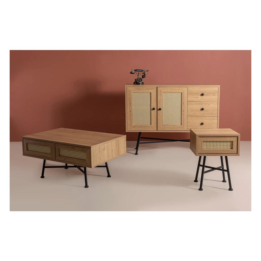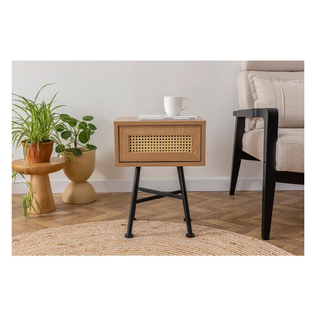 Tutvustame meie suurepärast küljelaua, mis on täiuslik segu elegantsist ja funktsionaalsusest, mis tõstab teie kodu mis tahes ruumi stiili. Vabastage elegantsi jõudMeie küljelaua stiilne disain ja puhtad jooned annavad ajatu elegantsi, mis täiendab vaevata iga sisekujundust. See ülima täpsusega valmistatud laud on tõeline meistriteos, mis lisab teie eluruumile elegantsi.Võrratu vastupidavus ja kvaliteetMe usume, et pakume ainult parimat, mistõttu on meie küljelaud valmistatud 100% melamiiniga kaetud puitlaastplaadist. See kvaliteetne materjal tagab erakordse vastupidavuse, muutes selle vastupidavaks kriimustustele, plekkidele ja igapäevasele kulumisele. Võite olla kindel, et see laud on teie kodus kauakestev kaaslane. Täiuslik tasakaal stiili ja funktsionaalsuse vahelMeie küljelaud ei ole mitte ainult uhke disainiga, vaid pakub ka rohkelt hoiuruumi. Avar lauaplaat pakub mugavat kohta teie lemmikraamatule, tass kohvi või dekoratiivse eseme jaoks, samas kui metalljalad lisavad selle üldisele esteetikale kaasaegse puudutuse. Tehnilised üksikasjad:Materjal: materjal: 100% melamiiniga kaetud puitlaastplaatJalad: MetallLaius: 40 cmKõrgus: 54 cmSügavus: 30 cmJalgade kõrgus: 40 cmVärv: naturaalneUuendage oma eluruumi meie küljelauaga juba täna ja kogege täiuslikku segu stiilist, vastupidavusest ja funktsionaalsusest. Ärge jätke kasutamata seda võimalust muuta oma kodu elegantsi paradiisiks. Tellige kohe ja hellitage väärilist luksust. Värv: Natural