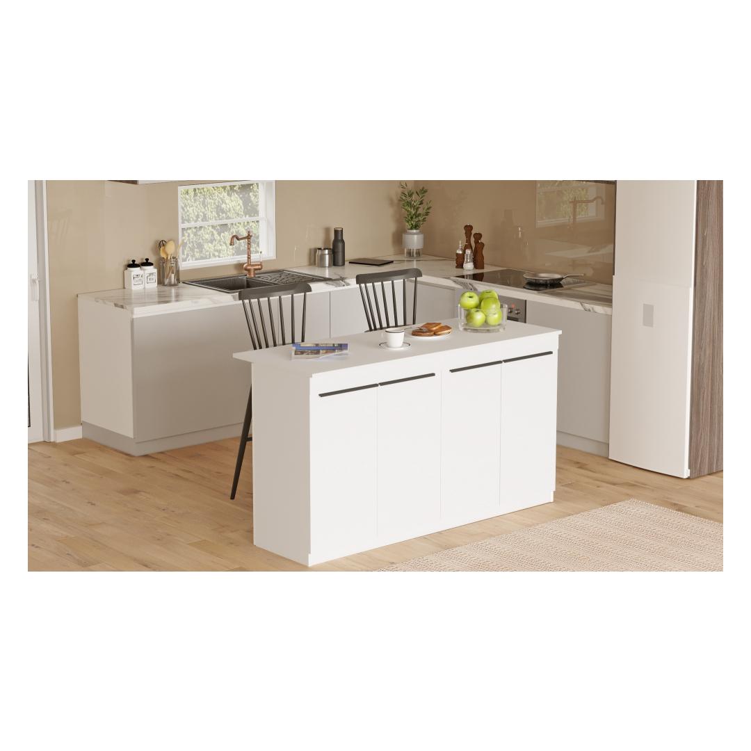 Lisage oma kööki elegantsi selle elegantse ja moodsa lauaga. Valge värvus lisab igale ruumile puhta ja värske välimuse, samas kui 18 mm paksus tagab stabiilsuse ja vastupidavuse. Olenemata sellest, kas naudite peretoitu või korraldate õhtusööki, see laud avaldab külalistele kindlasti muljet.