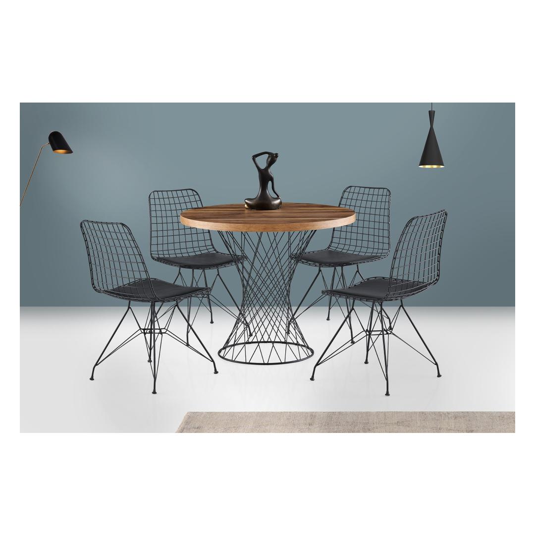 See elegantsete metalljalgadega söögilaud on kaasaegne, mis täiendab vaevata mis tahes sisekujundust. Pähklipuu ja musta värvi kombinatsioon lisab elegantsust, muutes selle mitmekülgseks valikuks mis tahes stiilis söögituppa.