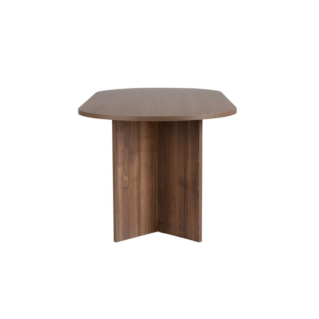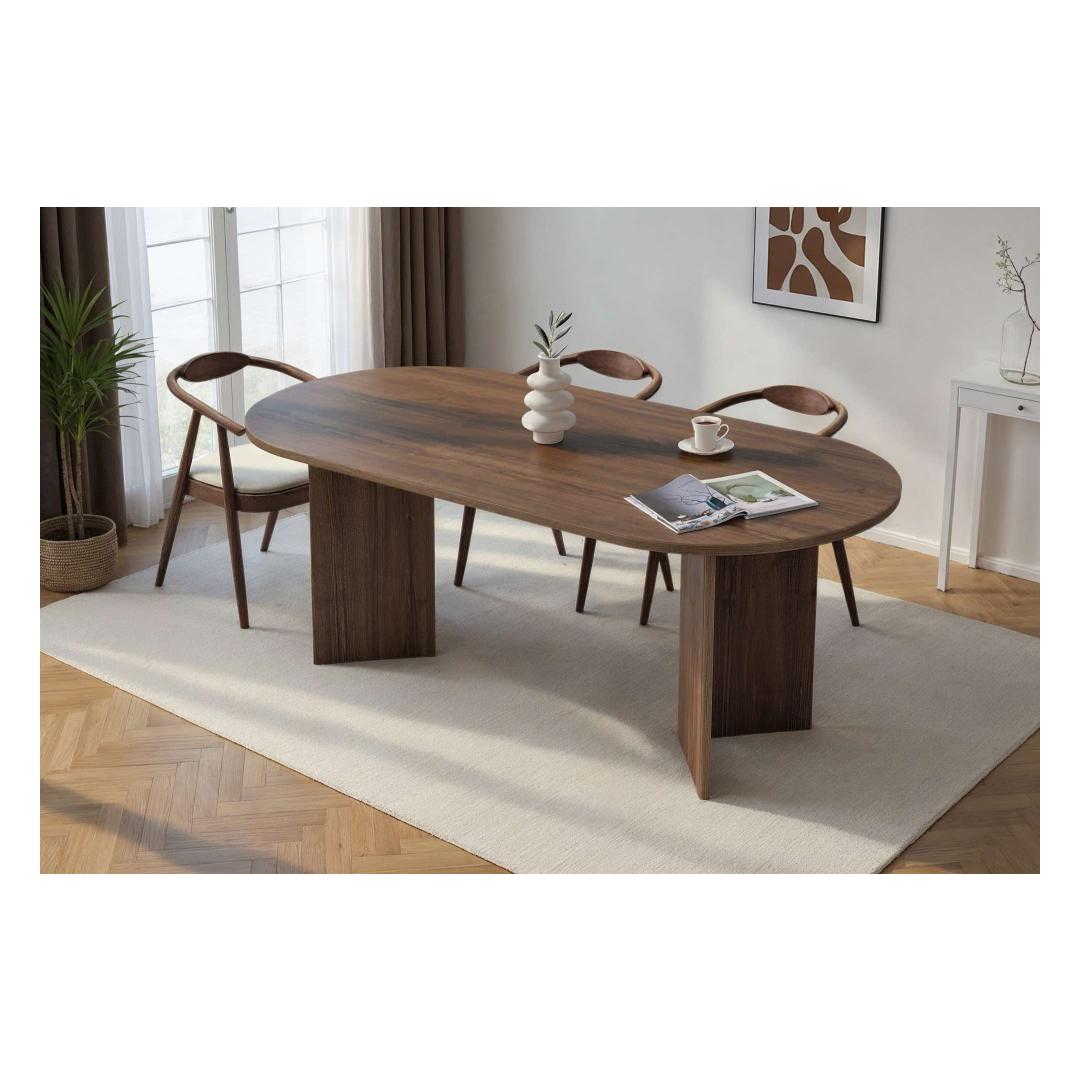 Tõsta oma söögikogemust meie kauni pähklipuust söögilauaga. Valmistatud 100% melamiinkattega puitlaastplaadist, kiirgab see laud elegantsi ja rafineeritust. Selle voolujooneline disain ja rikkalik pähklipuu värv tõstavad koheselt sinu söögitoa ilmet, muutes iga eine eriliseks sündmuseks.