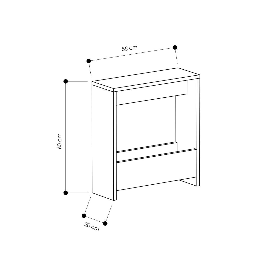Width: 55 cm Height: 60 cm Depth: 20 cm